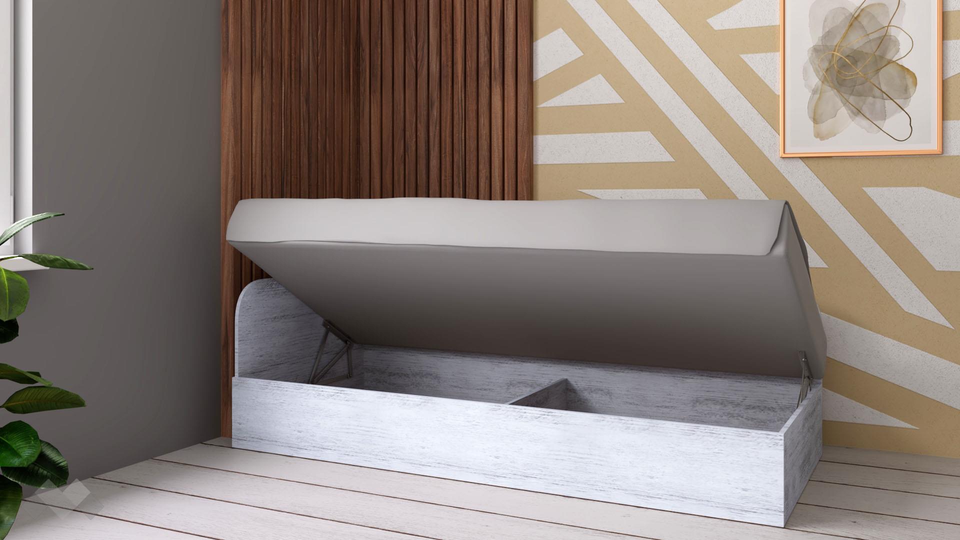 Леглото е с включен механизъм за повдигане на матрака, което ти позволява да използваш пространството под матрака като допълнително място за съхранение.