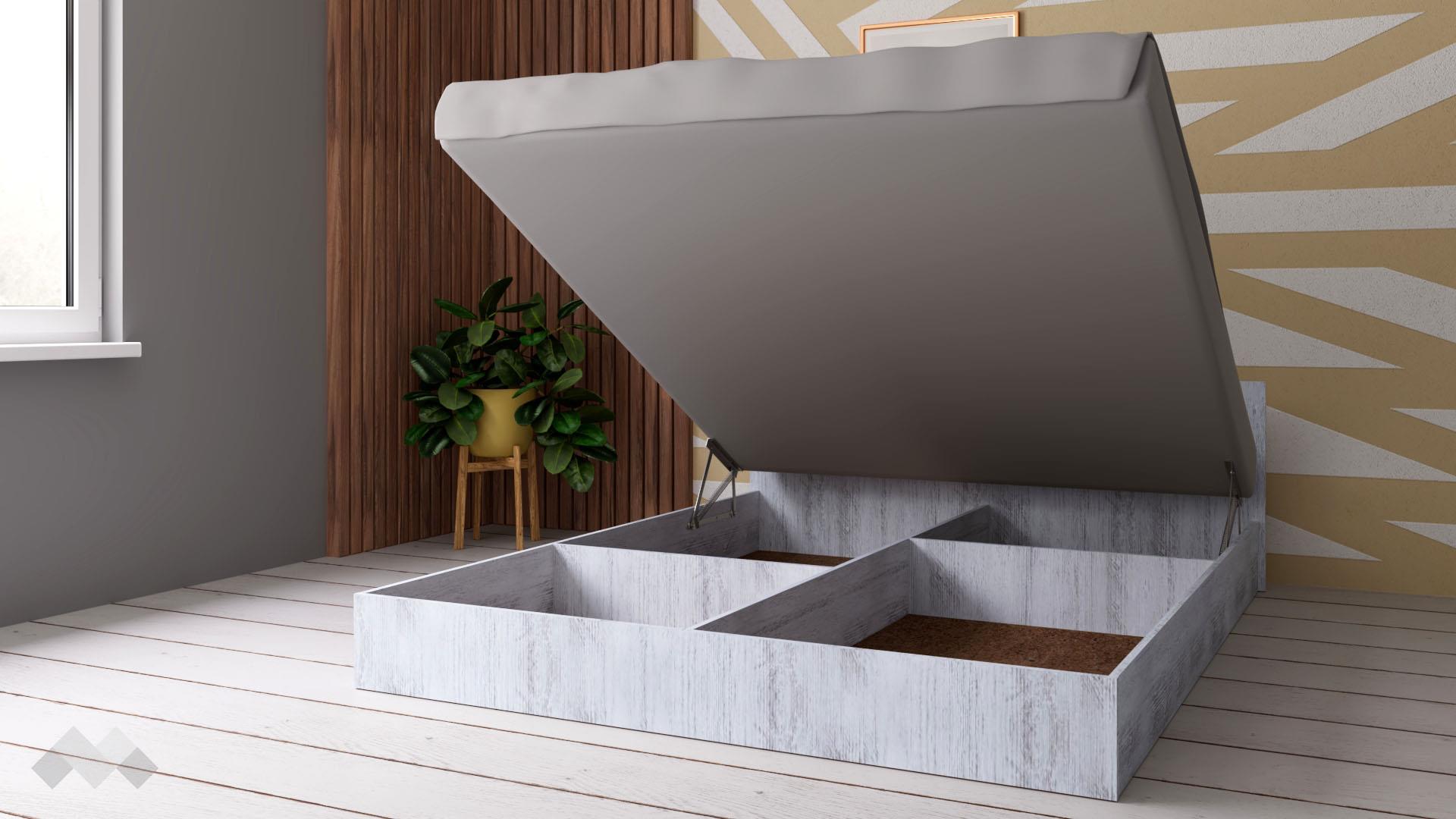 Спалнята е с включен механизъм за повдигане на матрака, за да използваш пространството под матрака като допълнително място за съхранение.