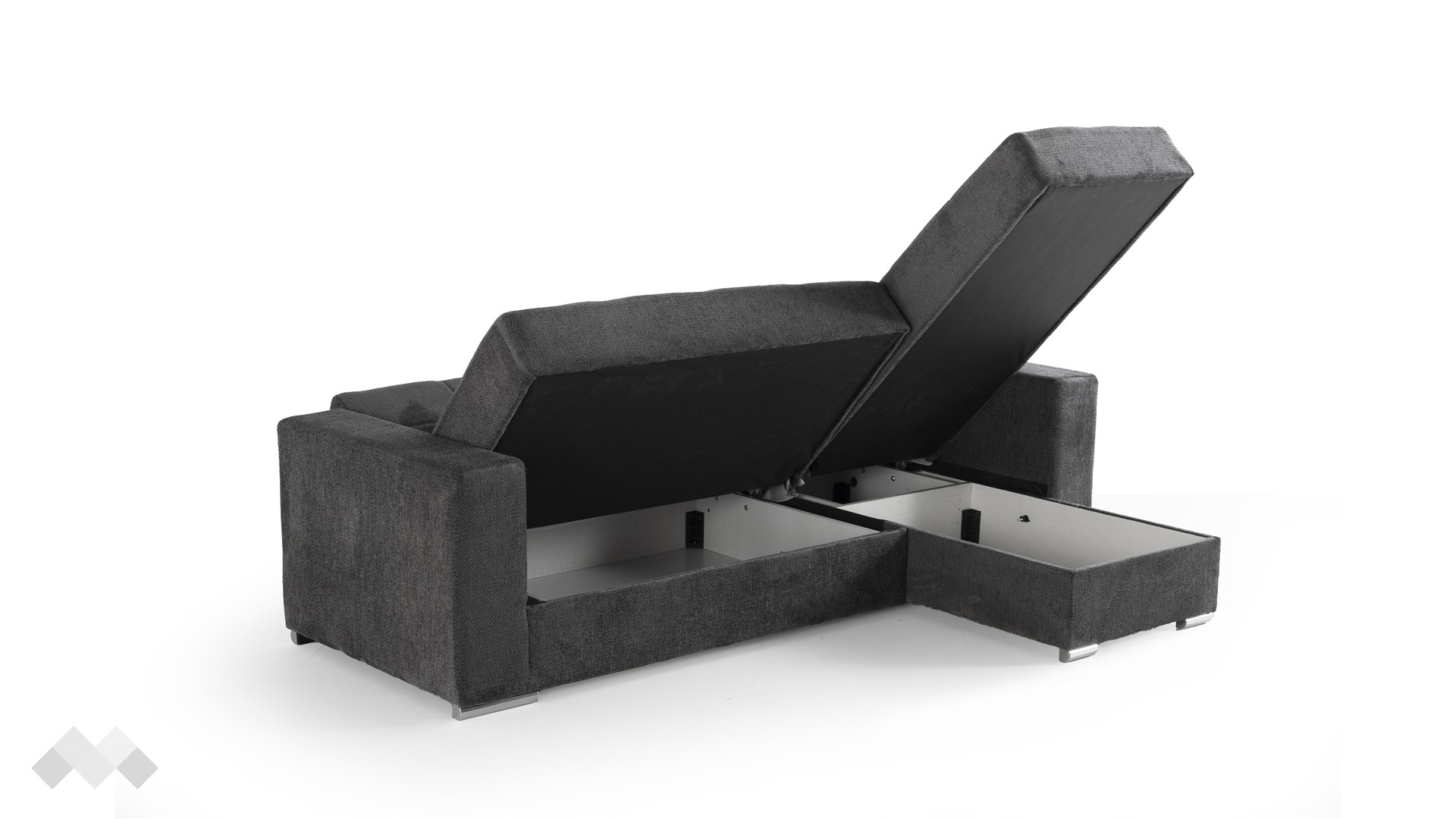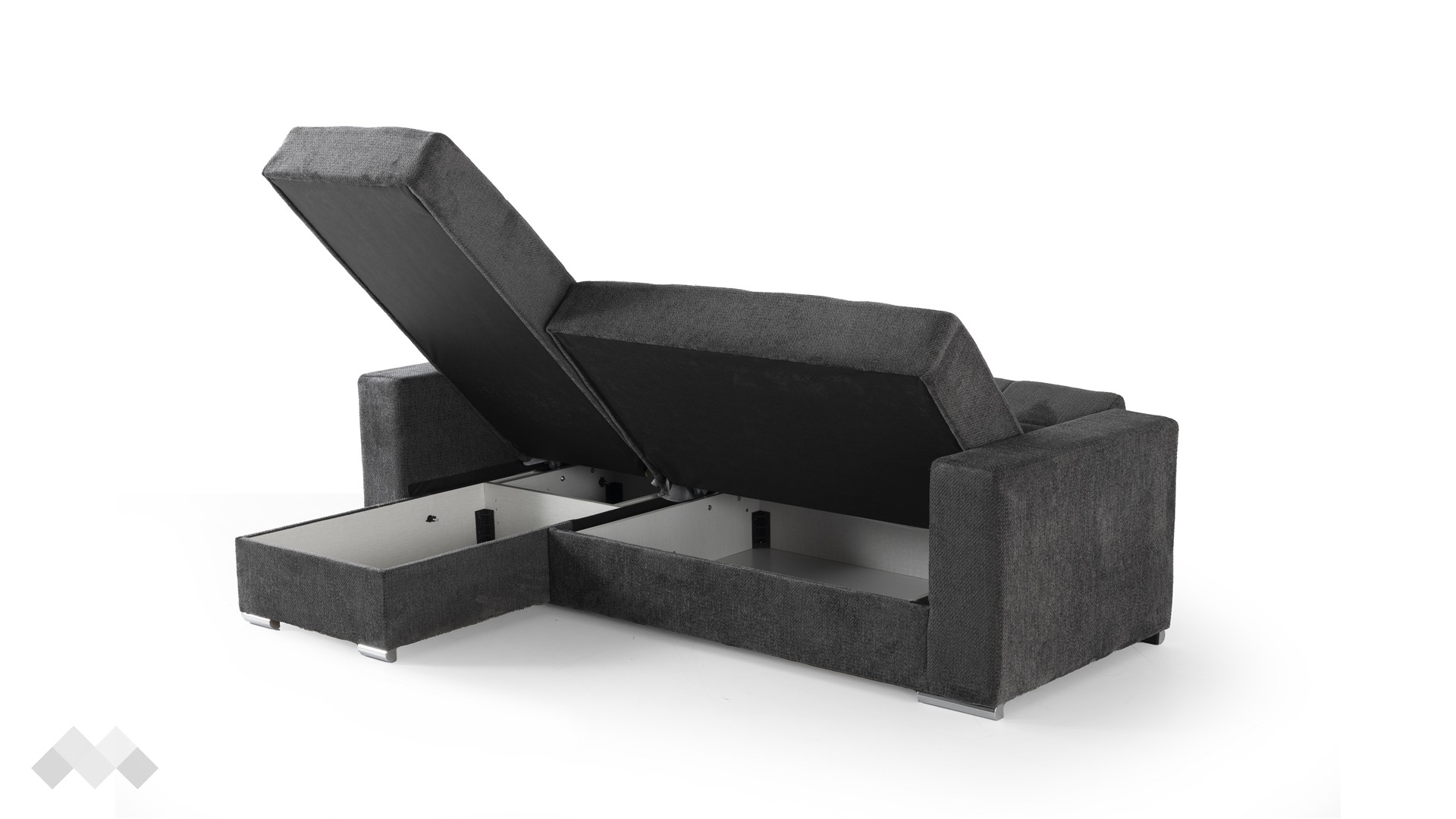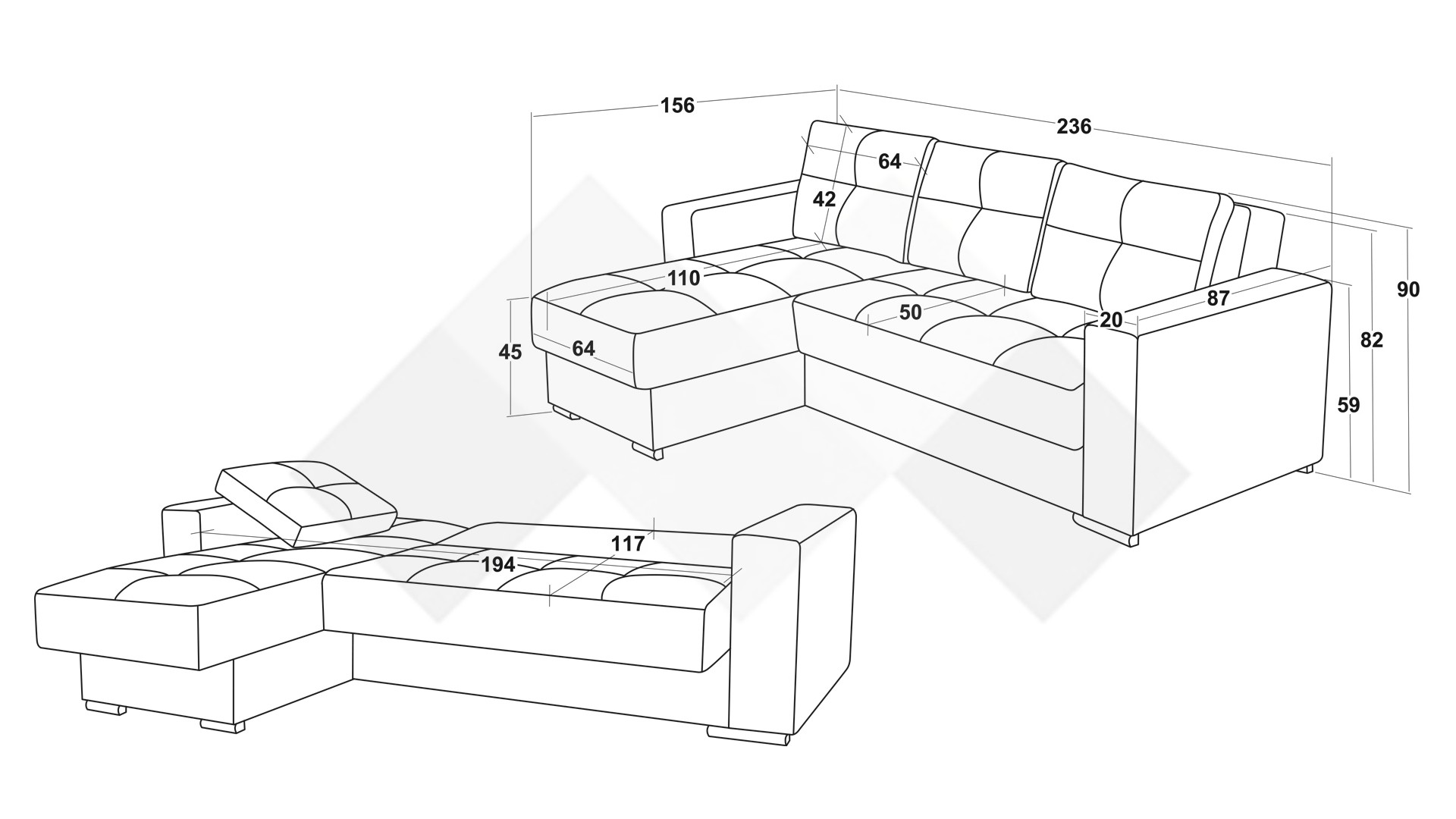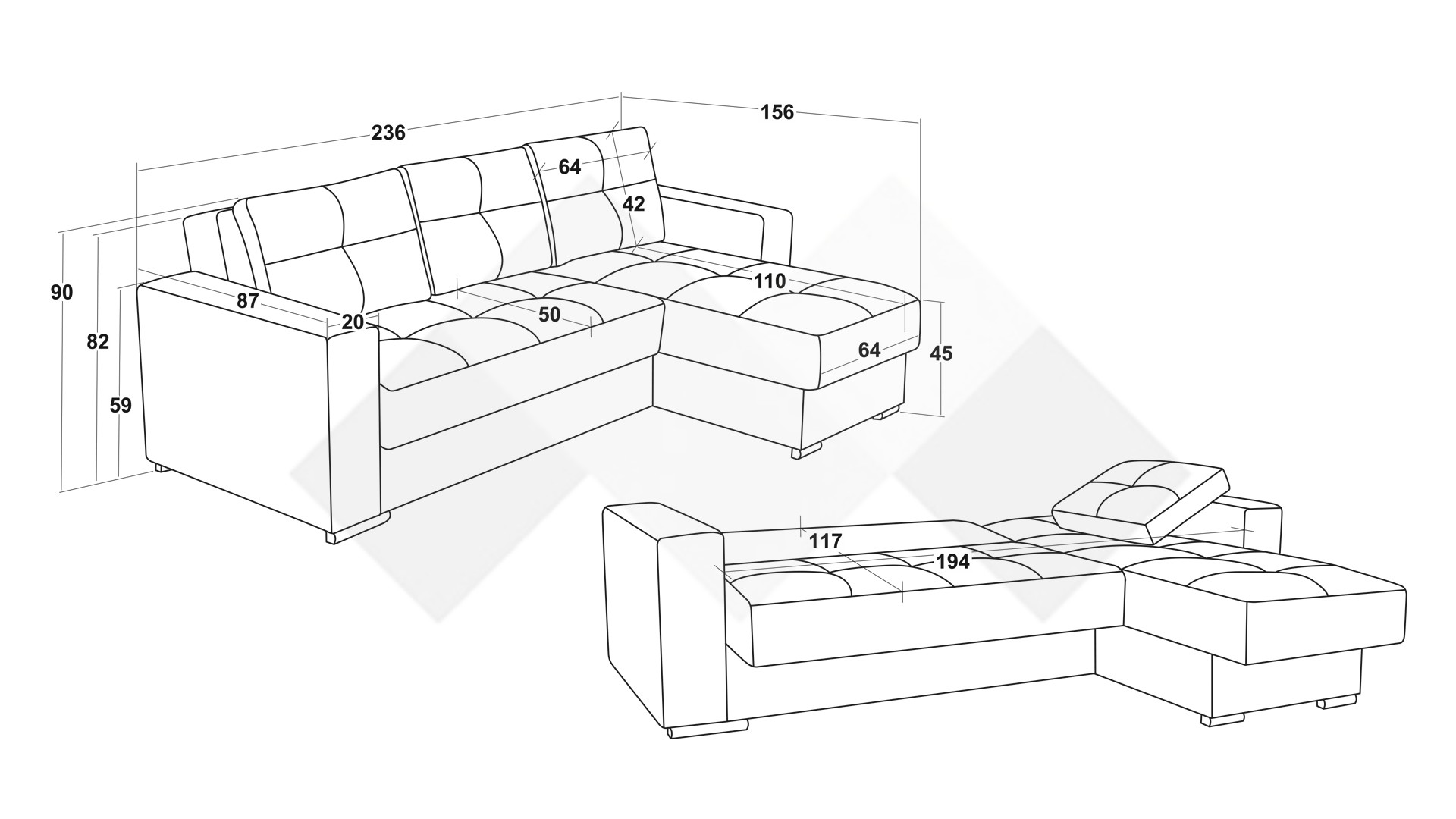 Диванът предлага достатъчно пространство за комфортното настаняване на всеки гост у дома. Той разполага с функция сън, превръщайки се в удобно легло за гости - 194/117 см., благодарение на клик-клак механизма. Друго предимство е практична ракла за съхранение на спално бельо или други вещи.