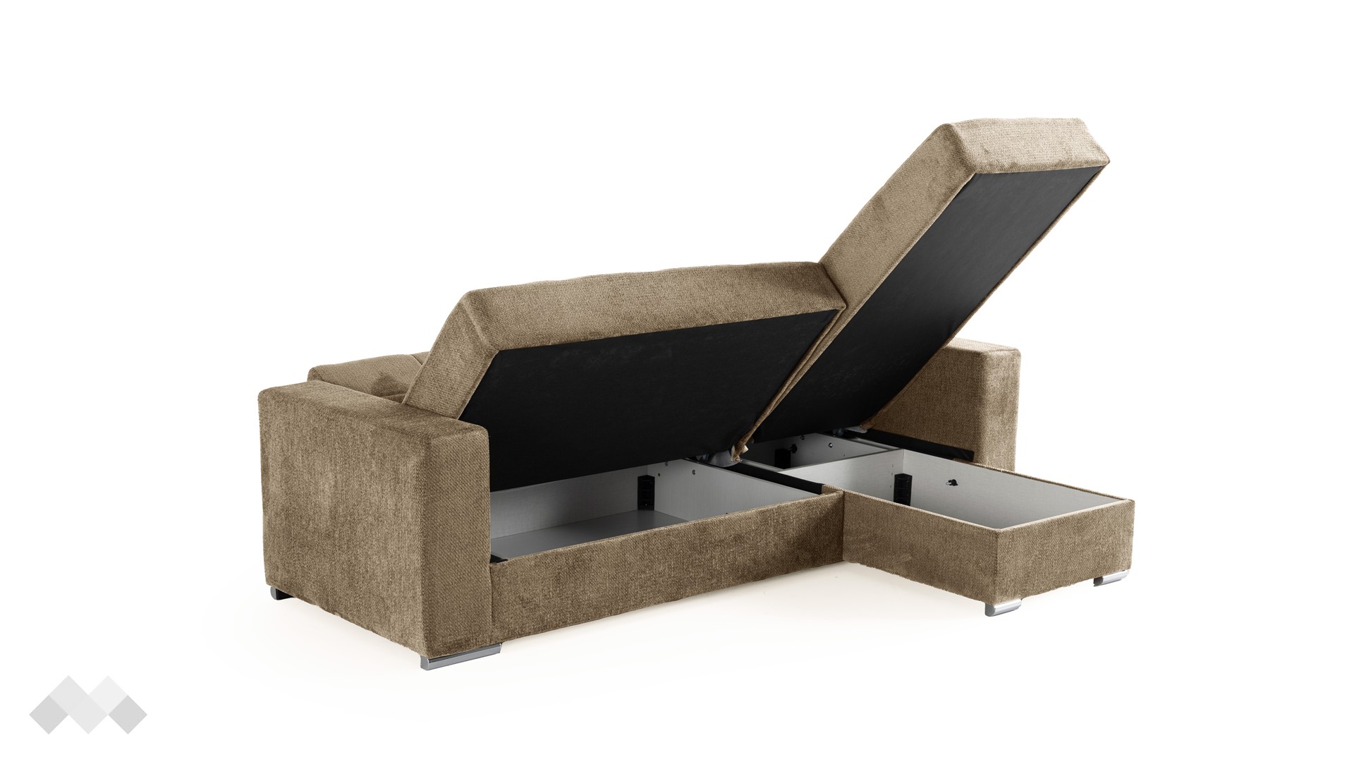 Диванът предлага достатъчно пространство за комфортното настаняване на всеки гост у дома. Той разполага с функция сън, превръщайки се в удобно легло за гости - 194/117 см., благодарение на клик-клак механизма. Друго предимство е практична ракла за съхранение на спално бельо или други вещи.