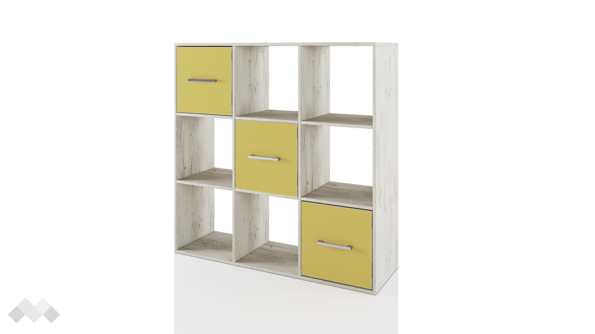 Благодарение на семплия и изчистен дизайн и цветовата комбинация на дъб пиемонт с горчица, етажерка Алвин се вписва във всеки интериор. Това ти позволява да създадеш свой собствен стил, когато подреждаш вещи и украси върху нея. Конструкцията ѝ позволява да бъде използвана и за разделяне на помещението на зони.