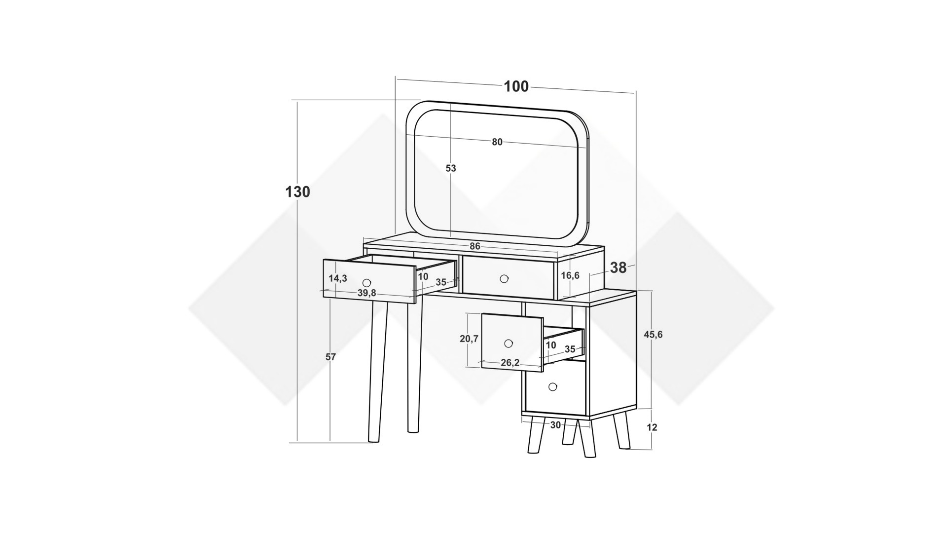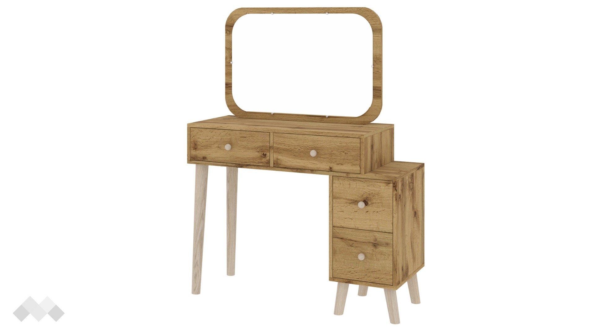 Тоалетка Аморе съчетава стил, елегантност и практичност, като предлага удобно и подредено място за всички твои козметични продукти и аксесоари. Със своите 4 чекмеджета и интересен дизайн, тя е идеалното решение за всяка съвременна спалня.