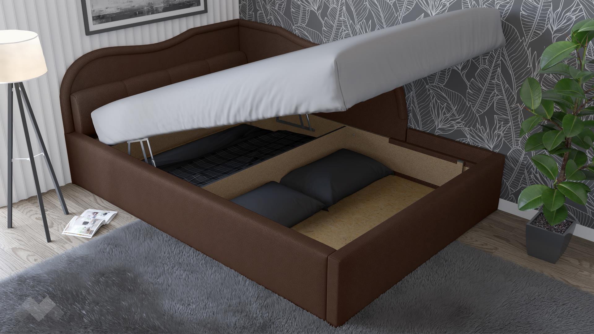 Леглото е с меки форми и елегантен дизайн. Подходящо е за матрак 140/200 см. Под матрака се открива широко пространство, готово да побере всички възглавници и завивки, на които все не намираш място. Така не се налага да закупуваш допълнителни шкафове у дома и пестиш пространство и пари.