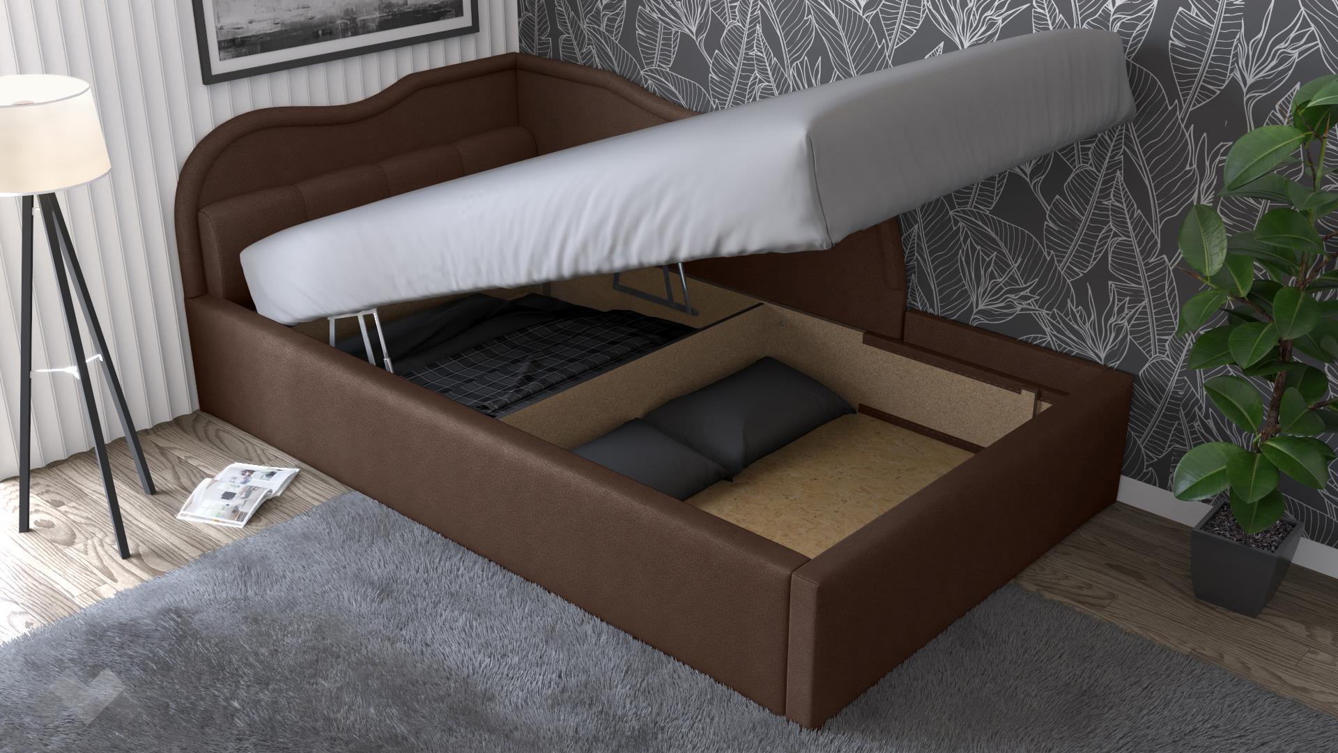 Леглото е с меки форми и елегантен дизайн. Подходящо е за матрак 120/190 см. Под матрака се открива широко пространство, готово да побере всички възглавници и завивки, на които все не намираш място. Така не се налага да закупуваш допълнителни шкафове у дома и пестиш пространство и пари.