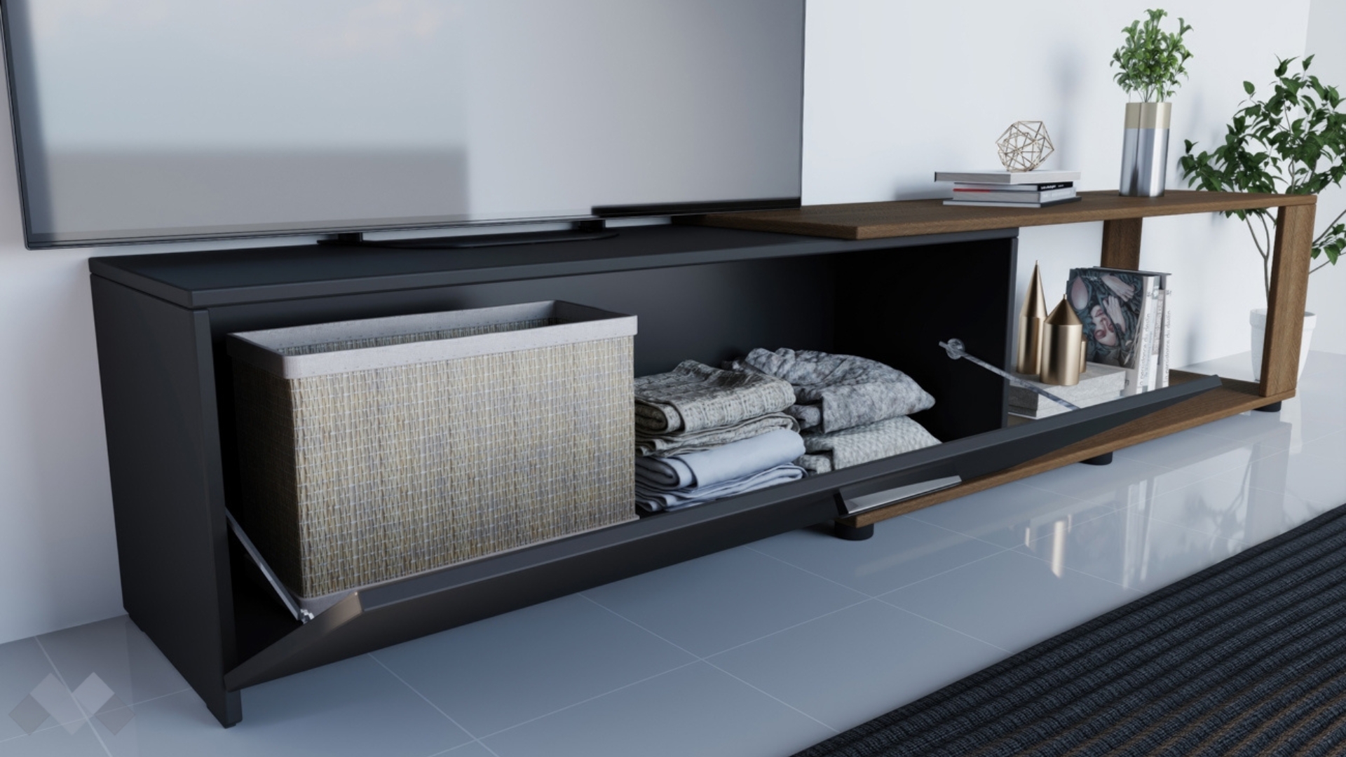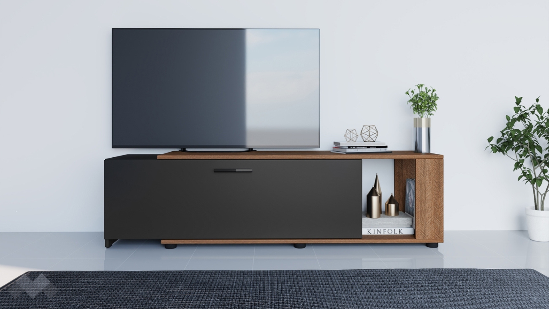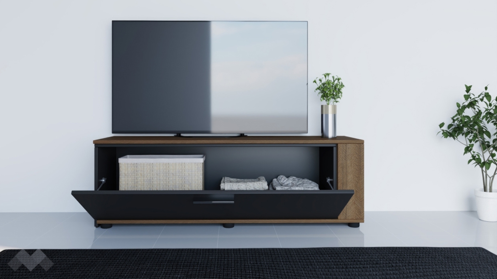 ТВ шкаф Ангел разполага и с чекмедже, където можеш да съхраняваш своите вещи. Още един плюс е внимателно подбраната цветова комбинация, готова да впечатли всеки гост у дома.