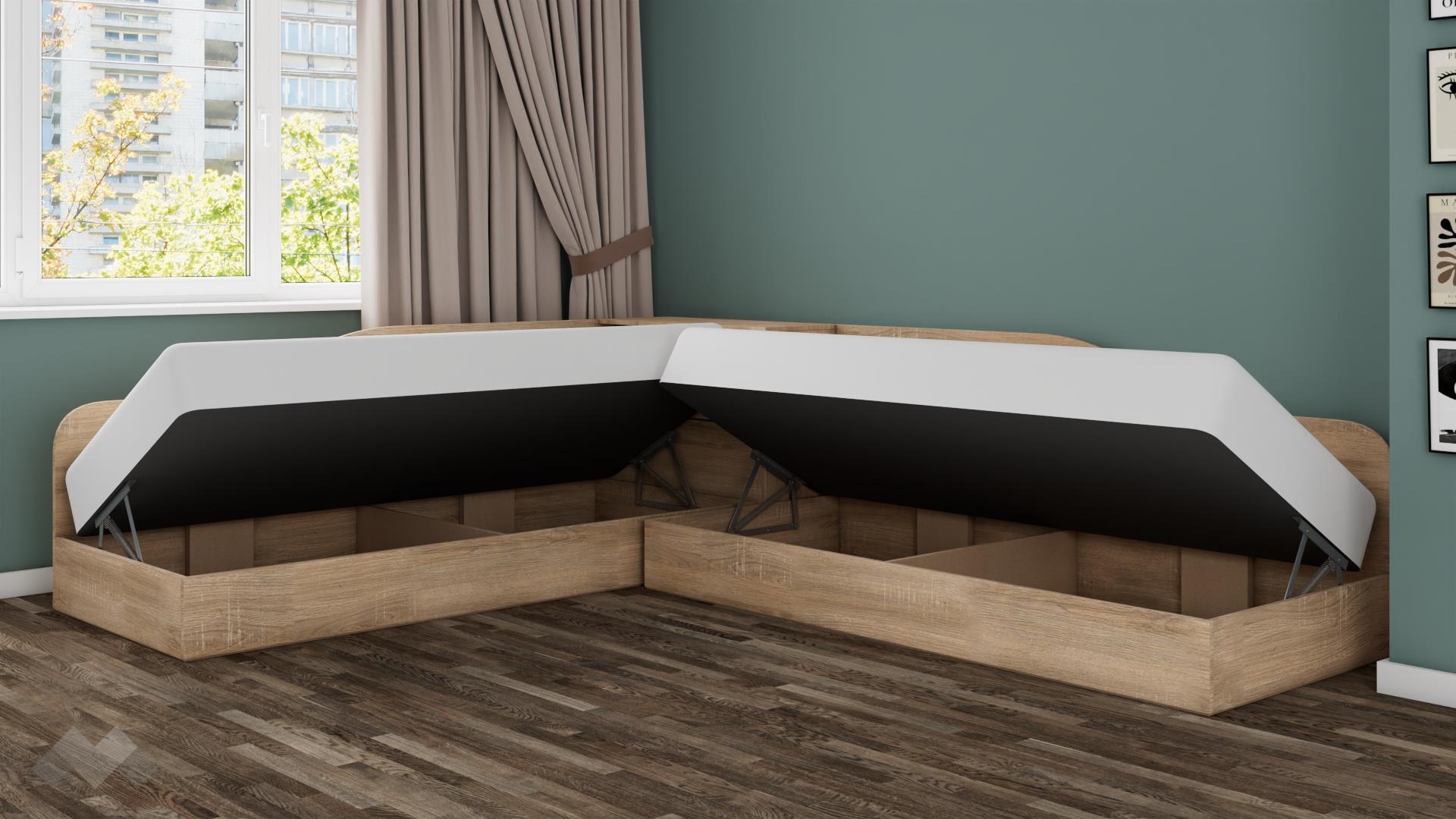 Ъгловите легла с ракла са идеалното решение за детската стая, съчетавайки удобство, стил и практичност в един функционален дизайн. Те предоставят уютно място за отдих и сън, като същевременно спестяват място за игри и свободно движение. Между леглата удобно се разполага ракла, която предлага практично съхранение на завивки и възглавници – всичко е на ръка разстояние и подредено.