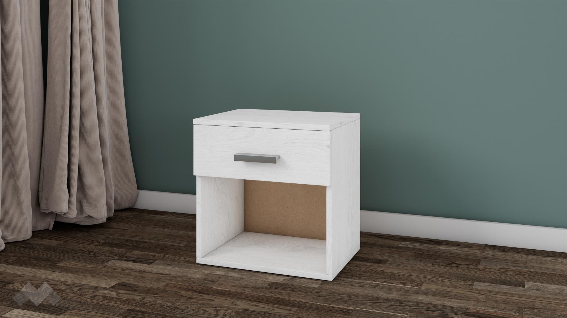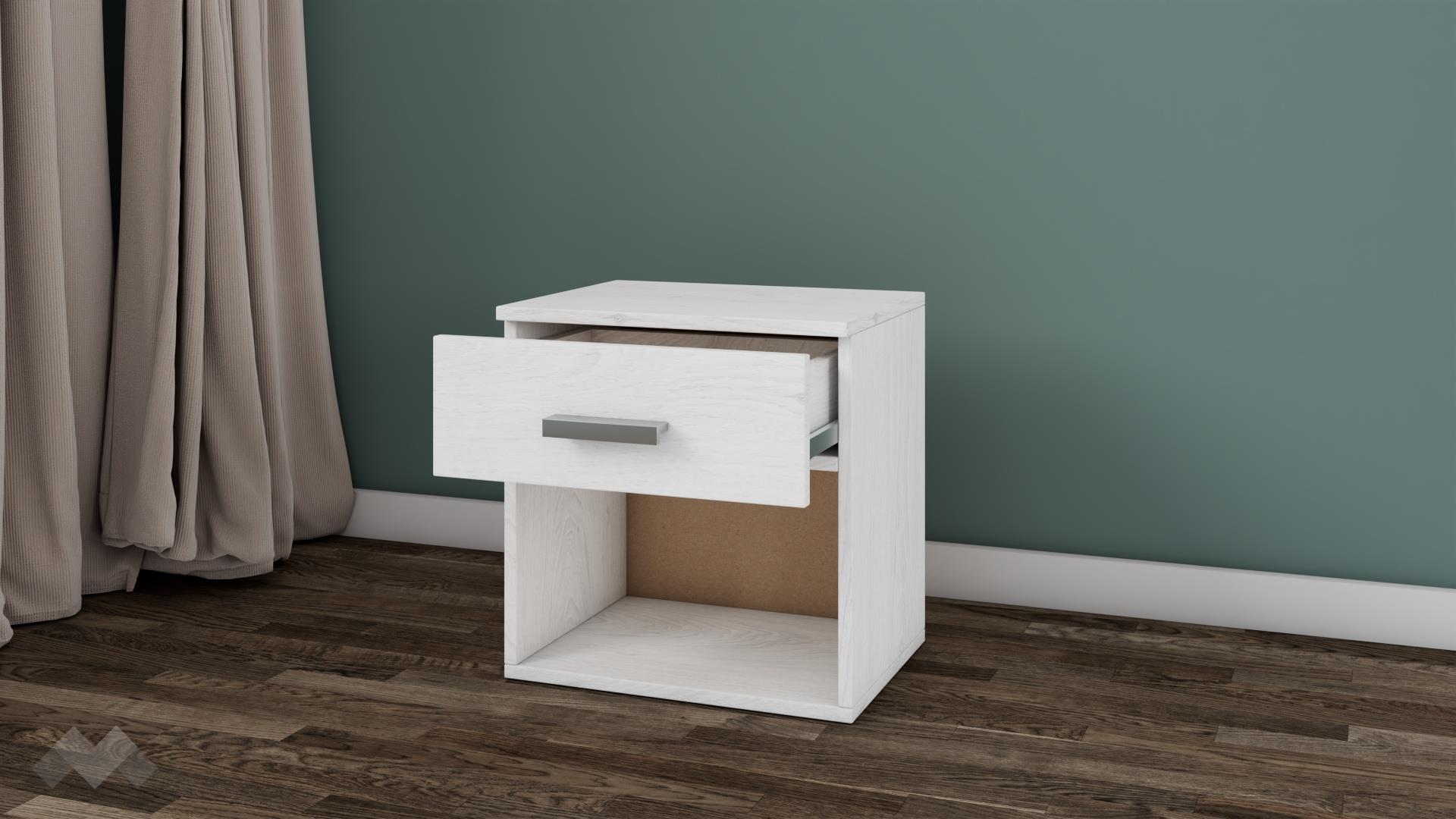 Нощно шкафче Арго е малко, но практично. Благодарение на оптималната му височина, то ще пасне на всяко легло. Чекмеджето и отвореният рафт ти предоставят достатъчно място за съхранение на всички най-необходими вещи, за да са винаги на една ръка разстояние. Върху горния плот можеш да поставиш нощна лампа или книгата, която четеш преди сън.