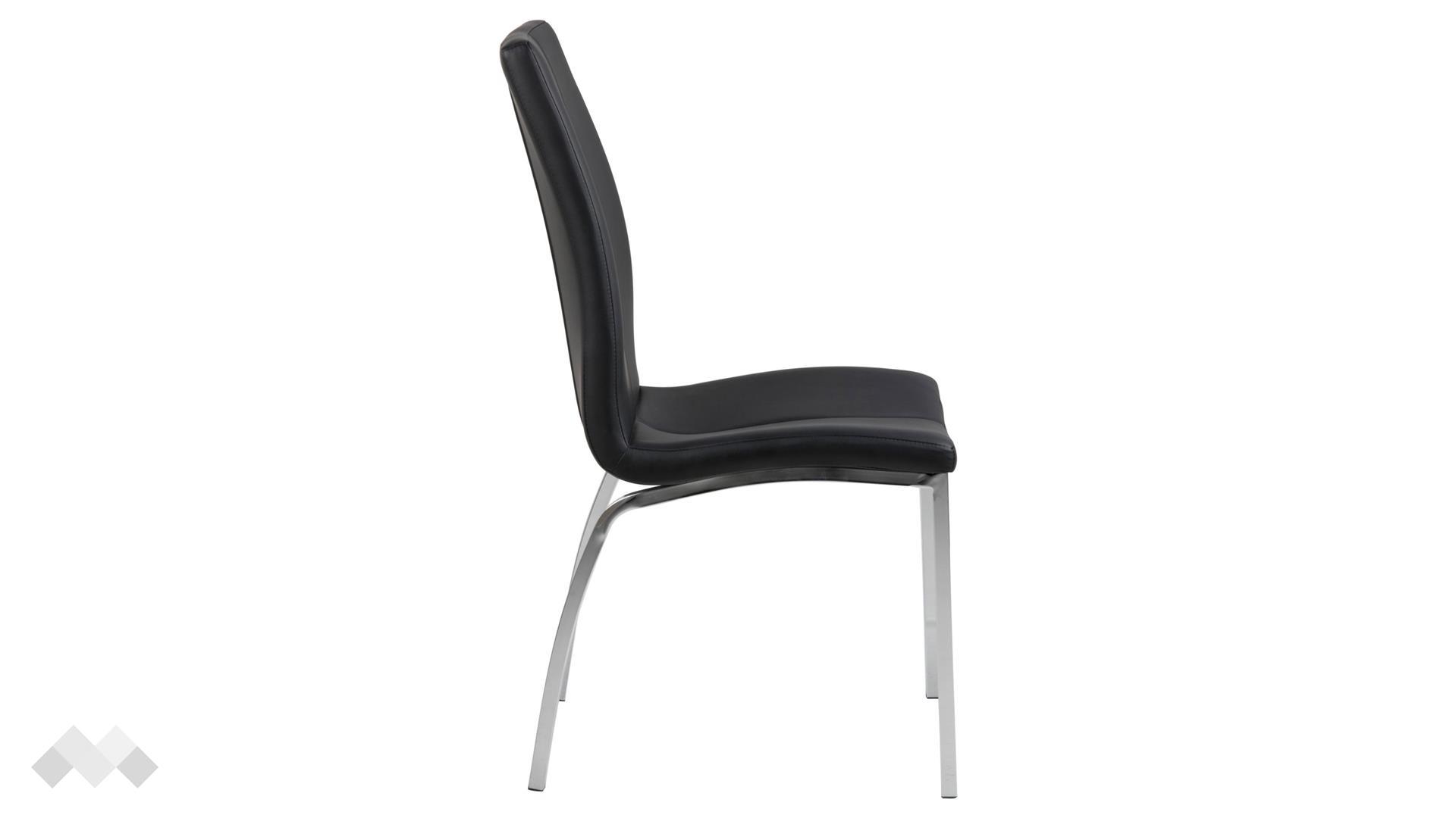 Седалката е тапицирана с качествена изкуствена кожа, която не само осигурява комфорт, но и е лесна за поддръжка. Металната рамка придава здравина и стабилност, като допълва съвременния и елегантен вид на стола.