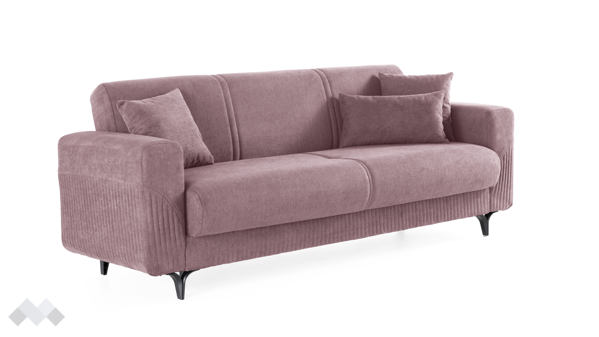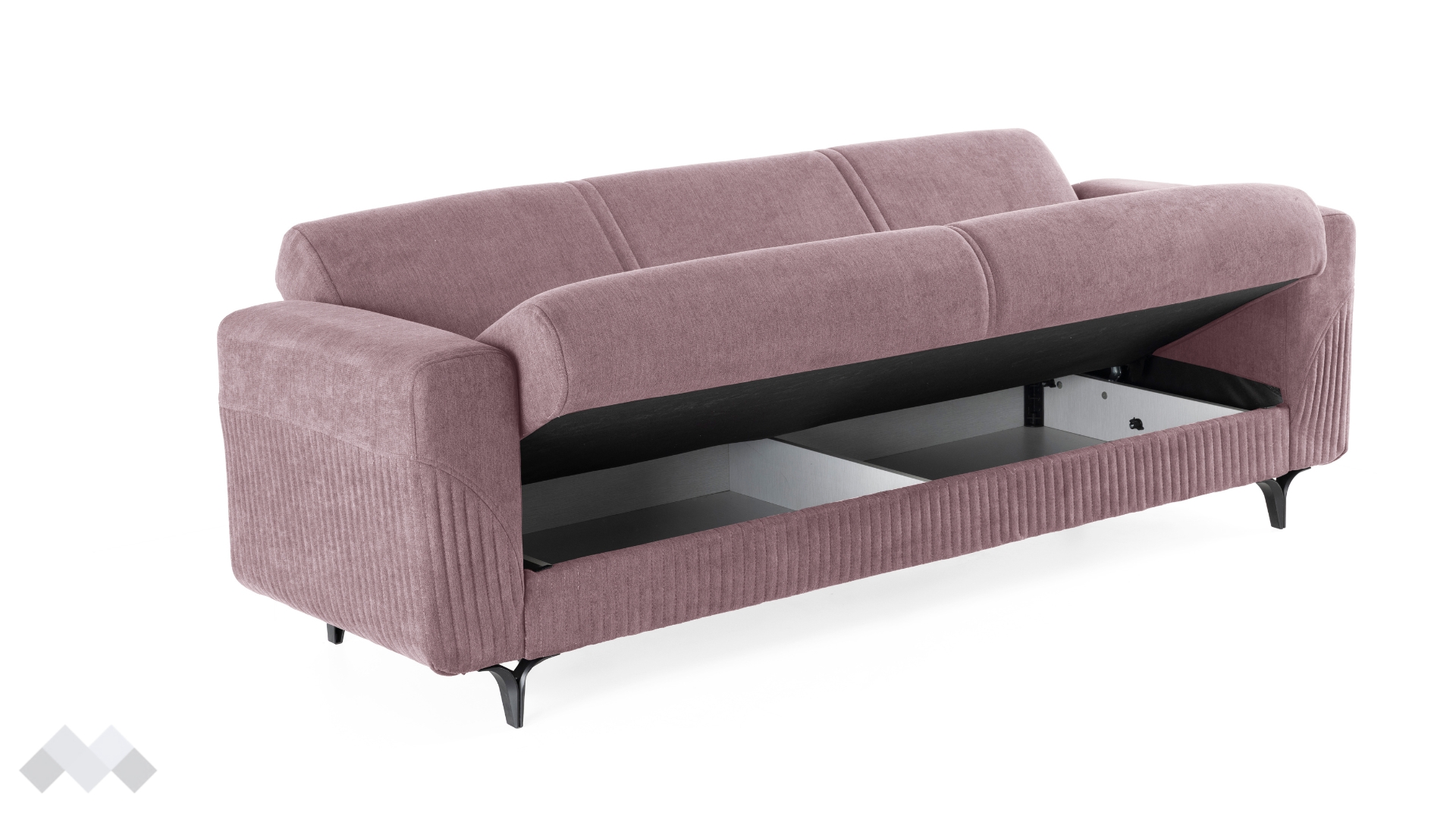 Създаден да впечатлява със своя външен вид, диван Атон е и функционален - с минимално усилие се превръща в комфортно и просторно легло - 104/182 см, посредством клик-клак механизъм. Диван Атон пристига в комплект с две възглавнички, които ще се превърнат в любимия ти помощник за следобедна дрямка. Под седалката ще откриеш още един плюс - ракла, в която можеш да съхраняваш вещите, които искаш да скриеш от погледа си, за да придадеш спретнат и подреден вид на стаята.