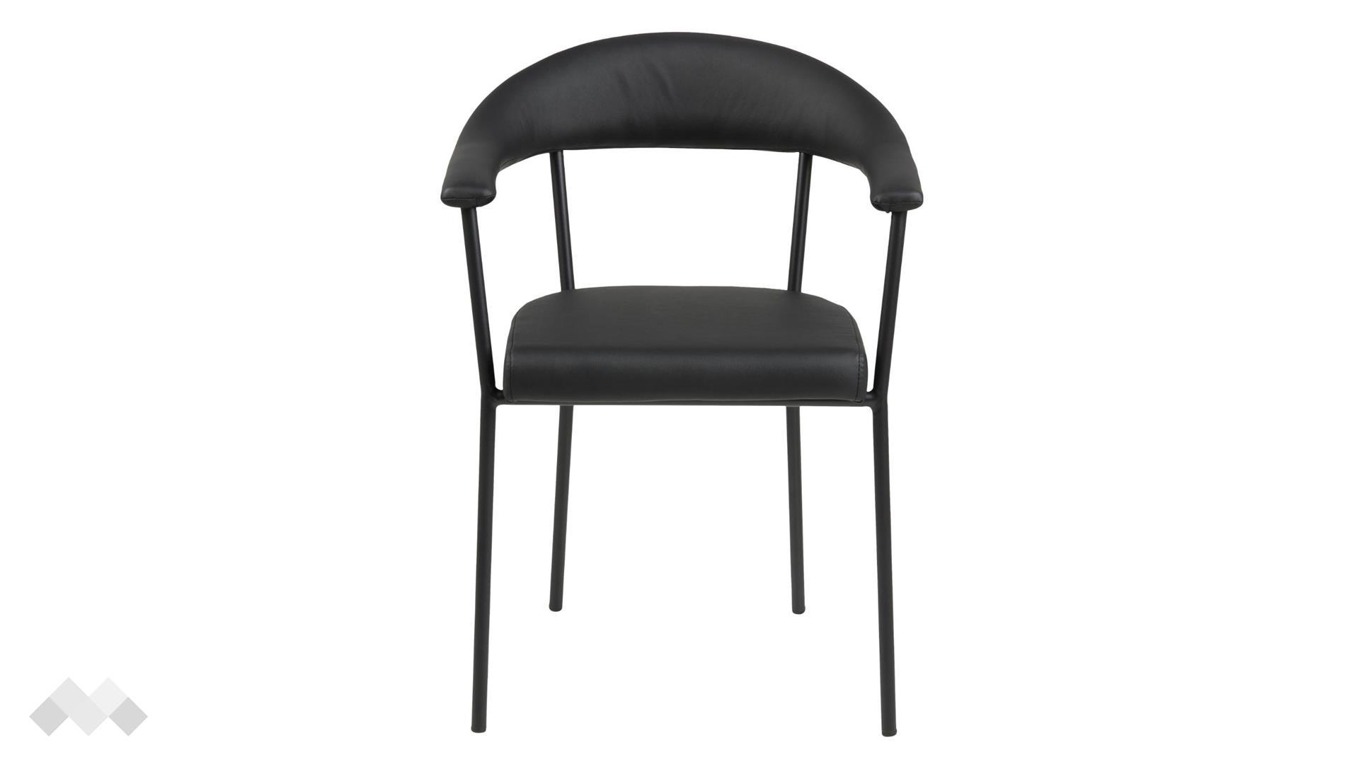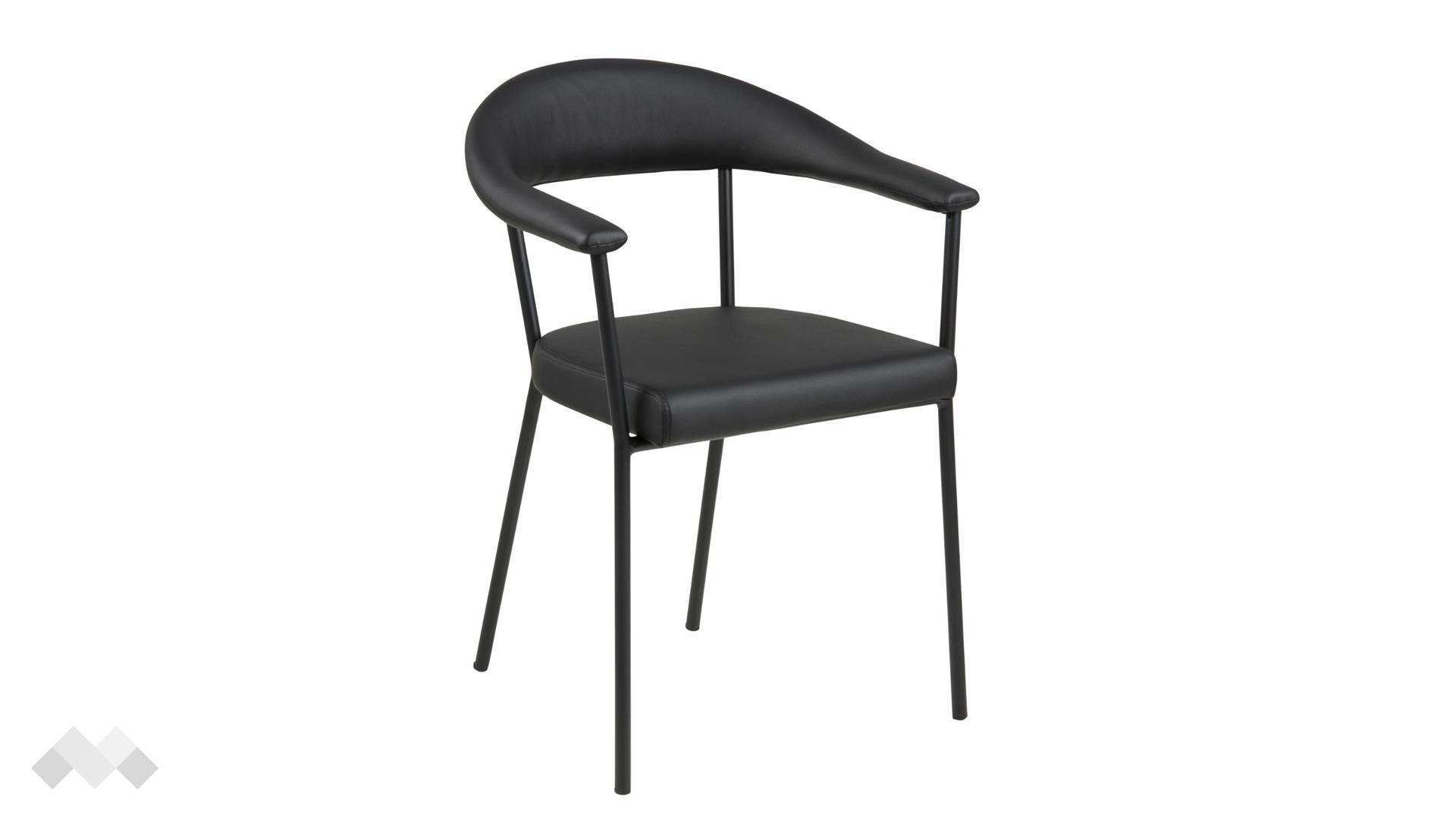 Минималистичната рамка със стоманена основа гарантира стабилност, а извитата облегалка и подлакътниците допълват ергономичния комфорт.