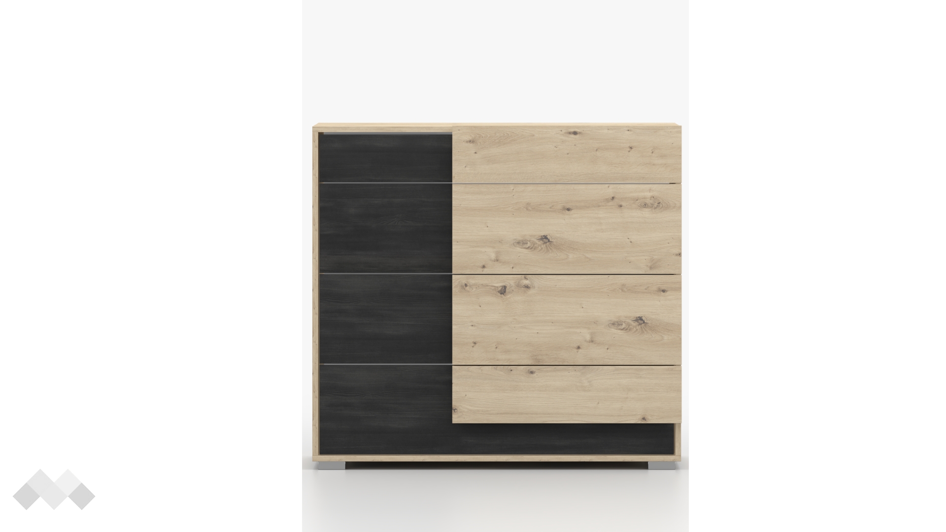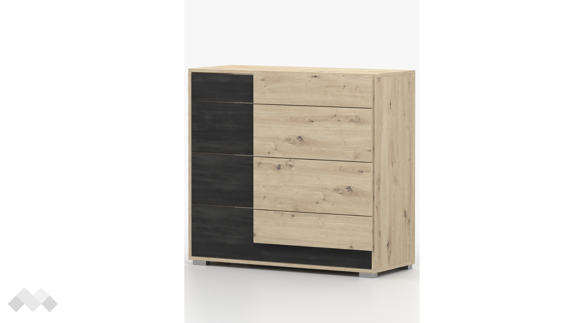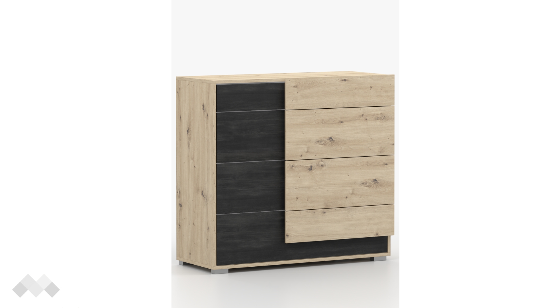 На твое разположение са четири чекмеджета, подходящи за организиране на дрехи, аксесоари или други необходими за теб неща. Плотът на скрина е най-подходящото място за любимите ти семейни снимки, декоративни картини, книги или други вещи, които искаш да бъдат винаги под ръка и да придават допълнителен чар на интериора.