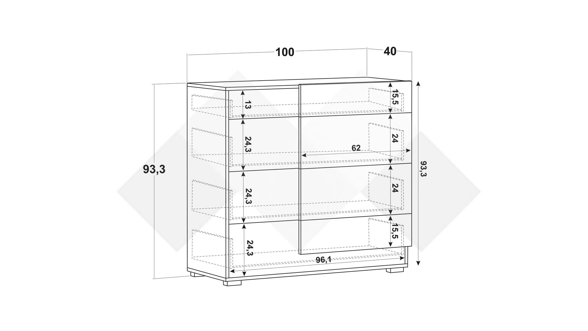 Д: 100 см Ш: 40 см В: 93,3 см