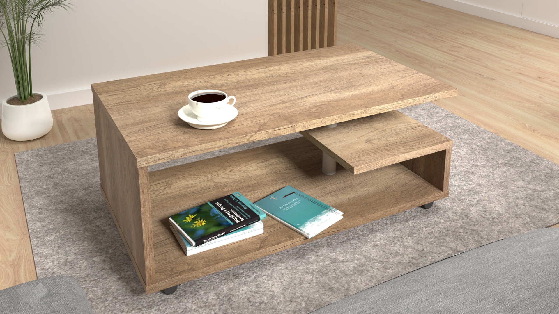 Холна маса Байли е идеалното допълнение за твоя дом! Ако обичаш да си в крак с последните модни тенденции, ще оцениш излъчването на холната маса. Изчистените линии превръщат масичката в отлично решение за интериора вкъщи. Под основния плот се крие втори, скрит и удобен за разполагане на списания, дистанционни, мобилни телефони и други вещи, които искаш да са ти под ръка, без да се виждат.