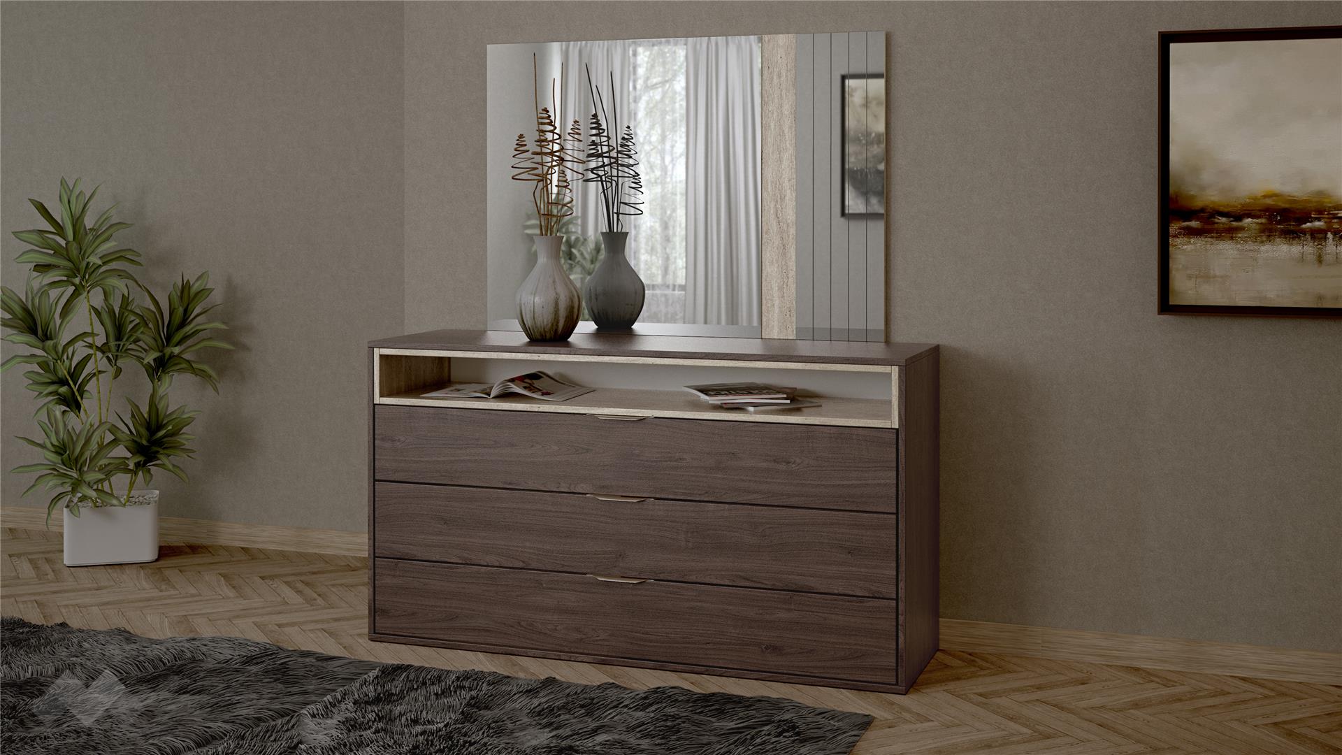 Скрин с огледало Барса впечатлява с балансирано съчетание на топлите дървесни нюанси на дъб арканзас и мекия, неутрален травертин, които създават уютна и спокойна атмосфера. Дизайнът е модерен и изчистен, с внимание към детайла и функционалността, което го прави отличен избор за съвременния дом.