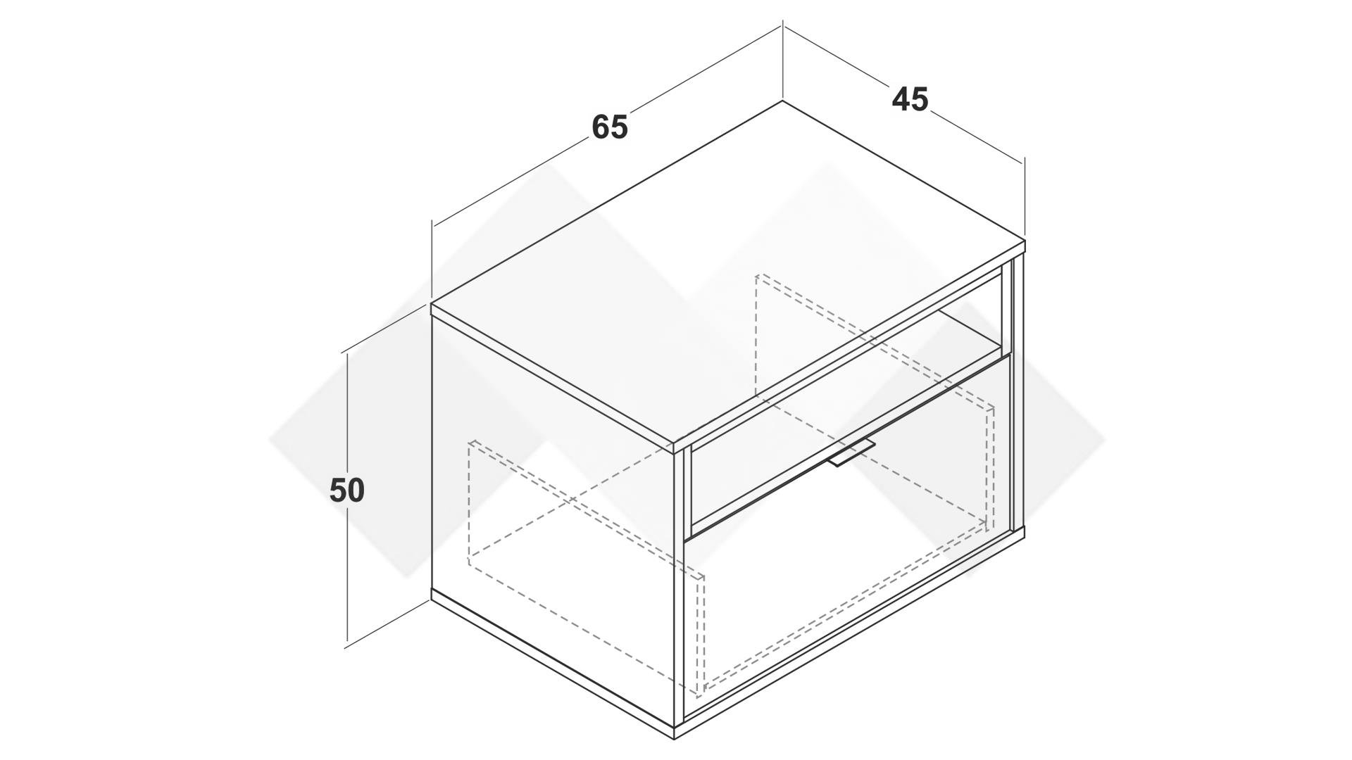 Нощният шкаф е с пефектна височина, пасваща на всяка спалня - така всикчо поставено на плота е на една ръка разстояние. Има отворен рафт, в който можеш да поставиш книга и просторно чекмедже за всичко, което искаш да ти е под ръка.