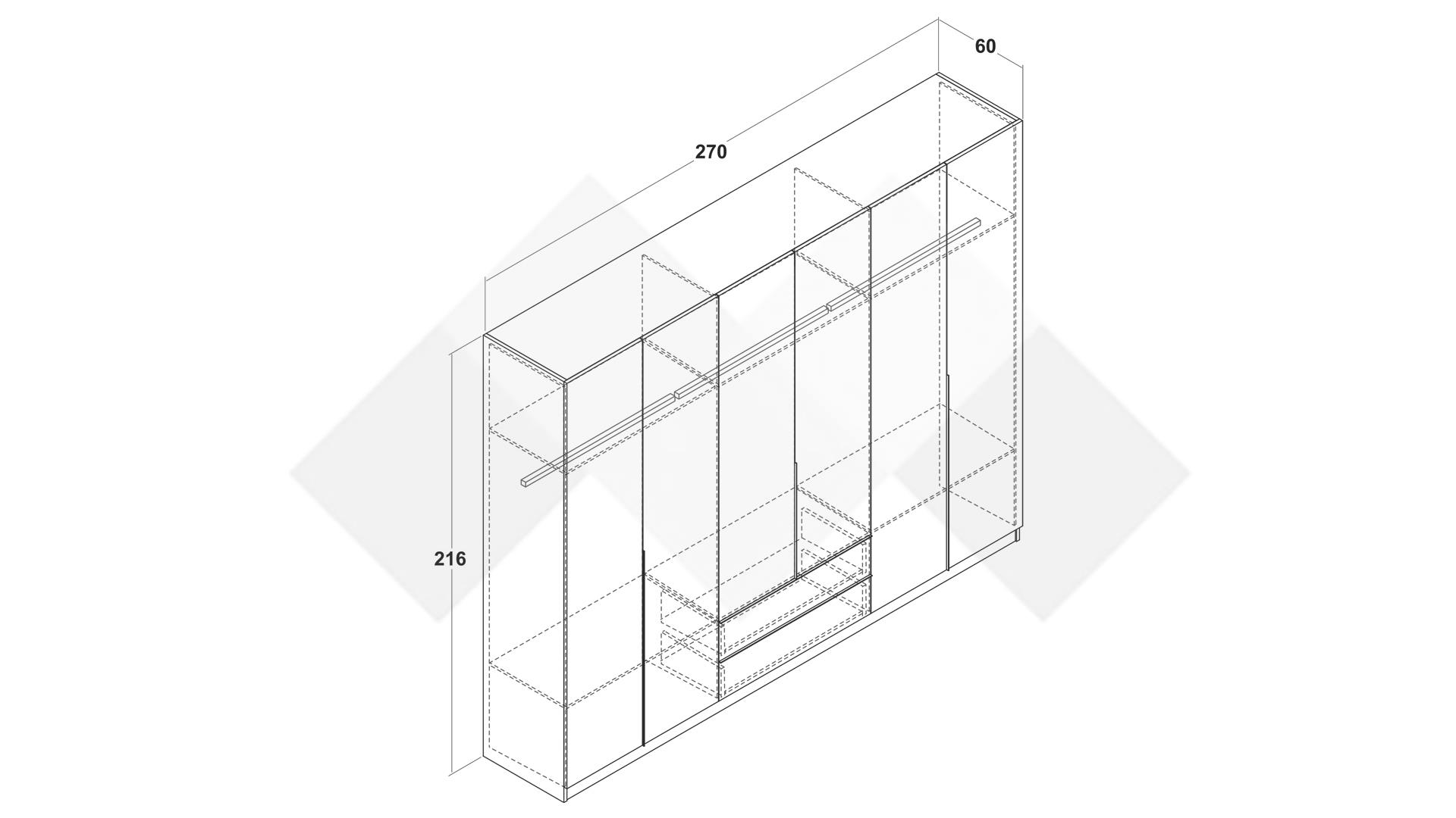 Д: 270 см Ш: 60 см В: 216 см
