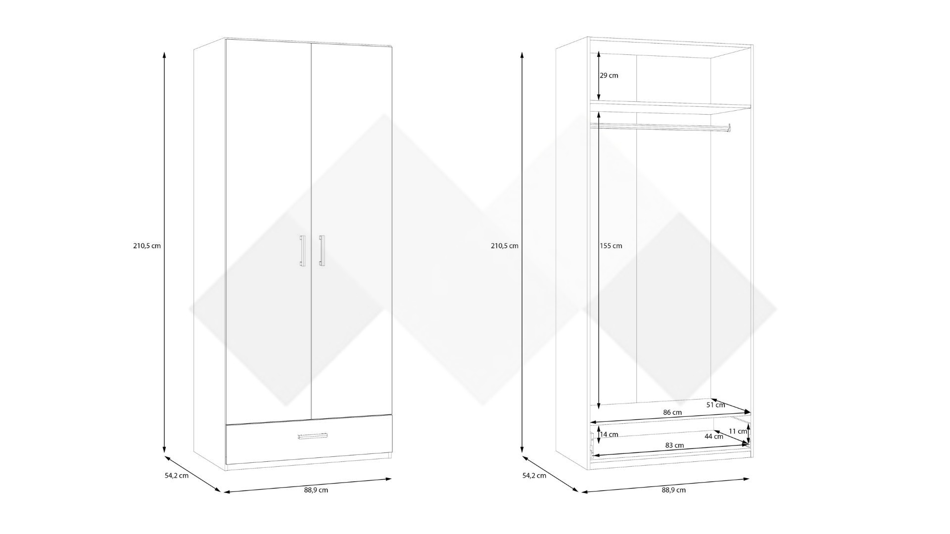 ✓ двукрилен ✓ чекмедже ✓ лост за закачалки ✓ практично разпределение ✓ качествена изработка