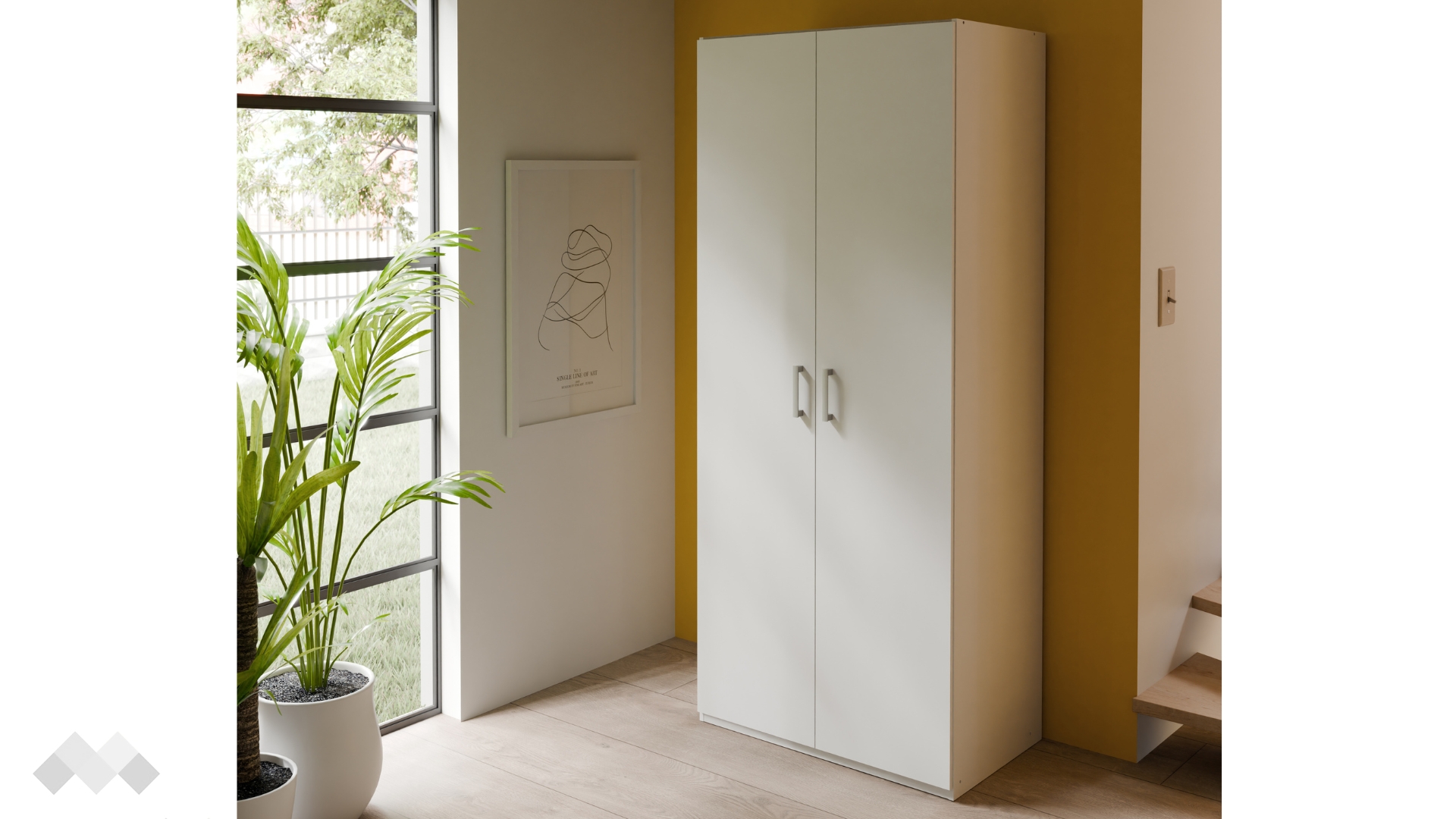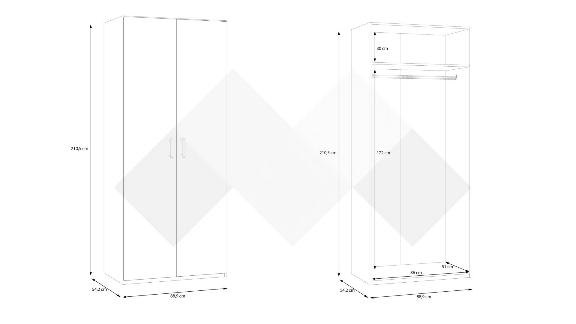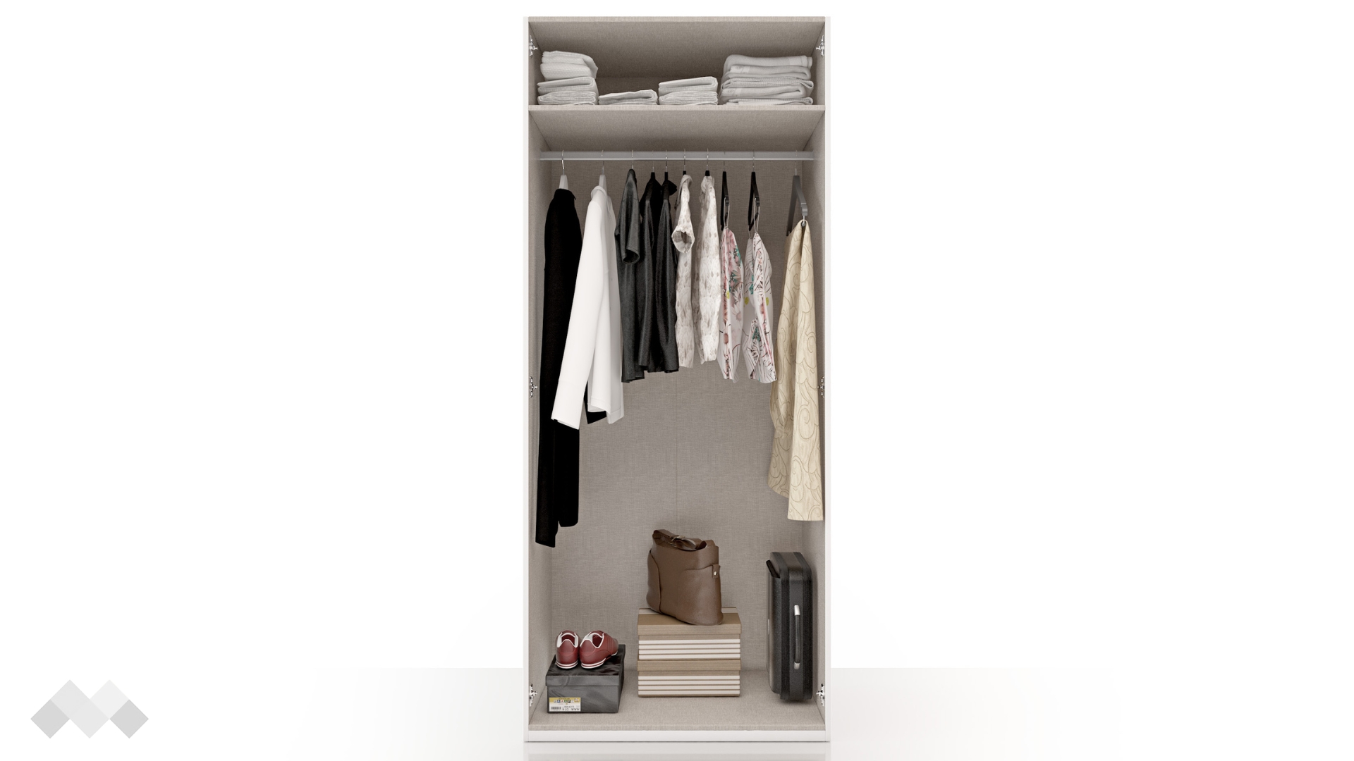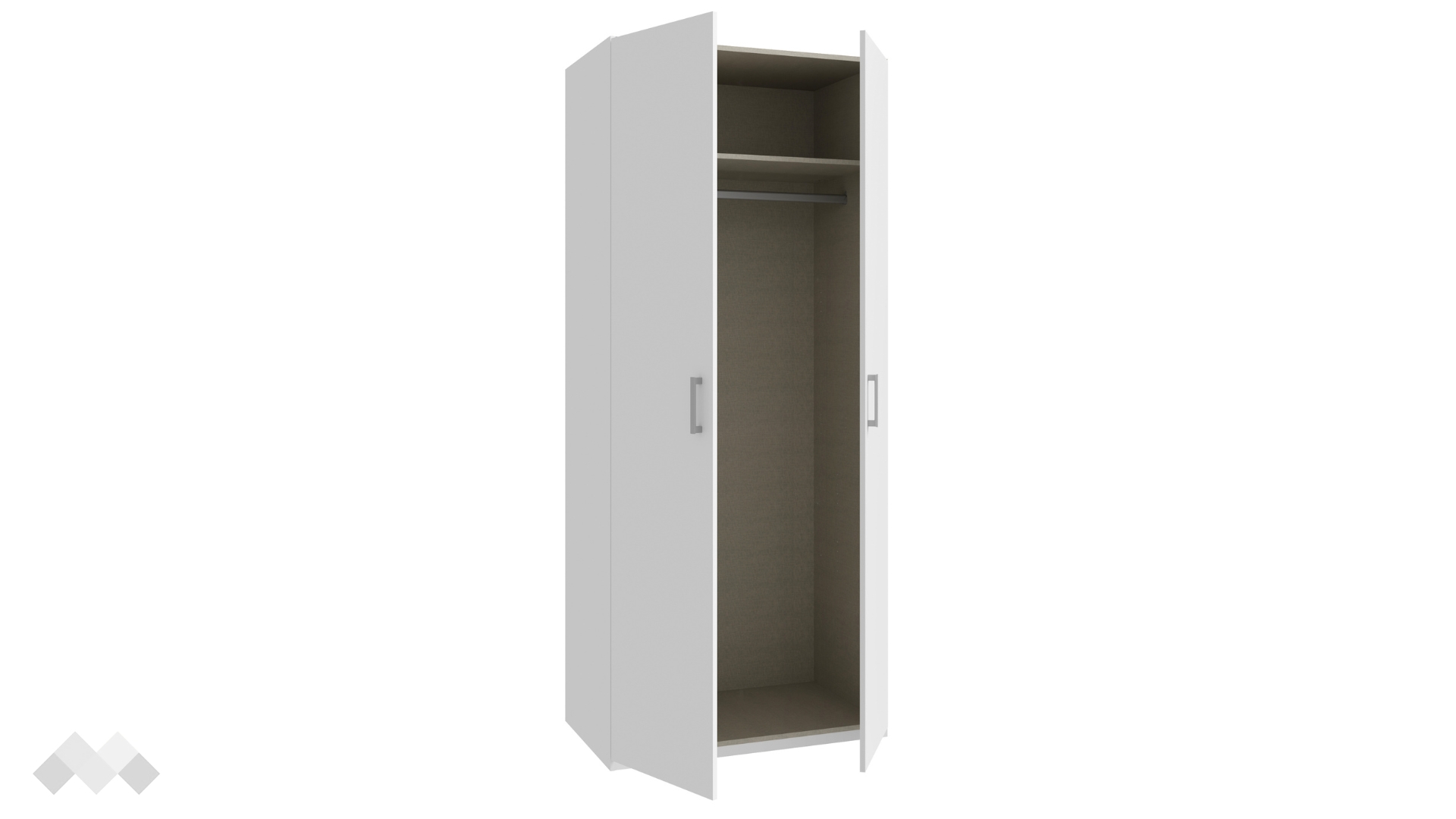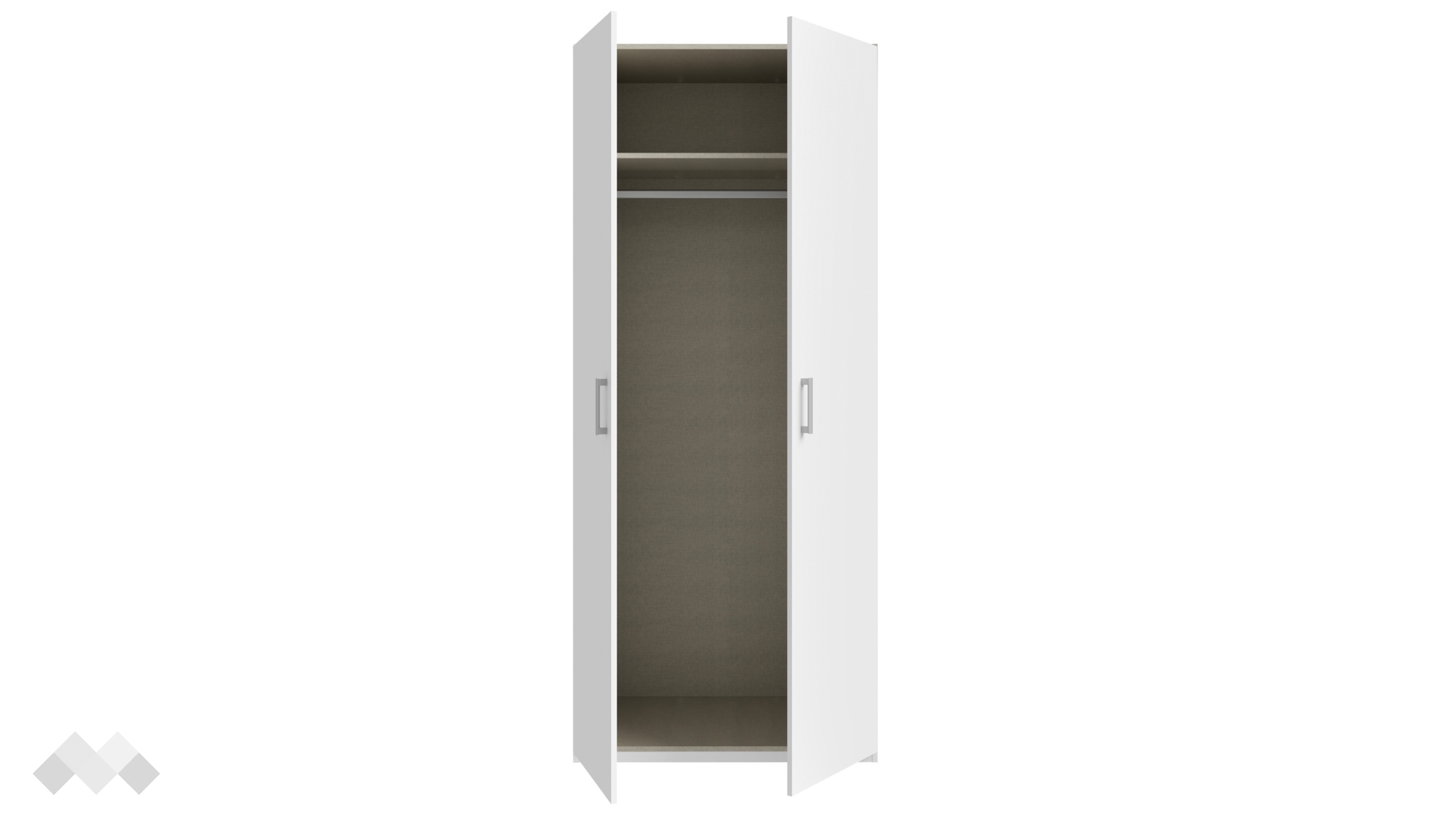 Този модел е двукрилен, с рафт и лост за закачалки. Има удобно разпределение, което ще ти позволи да подредиш добре всички дрехи и аксесоари. Можеш да използваш рафта за съхранение на сгънати дрехи, а на лоста да закачиш всичко, което искаш да бъде готово за обличане.