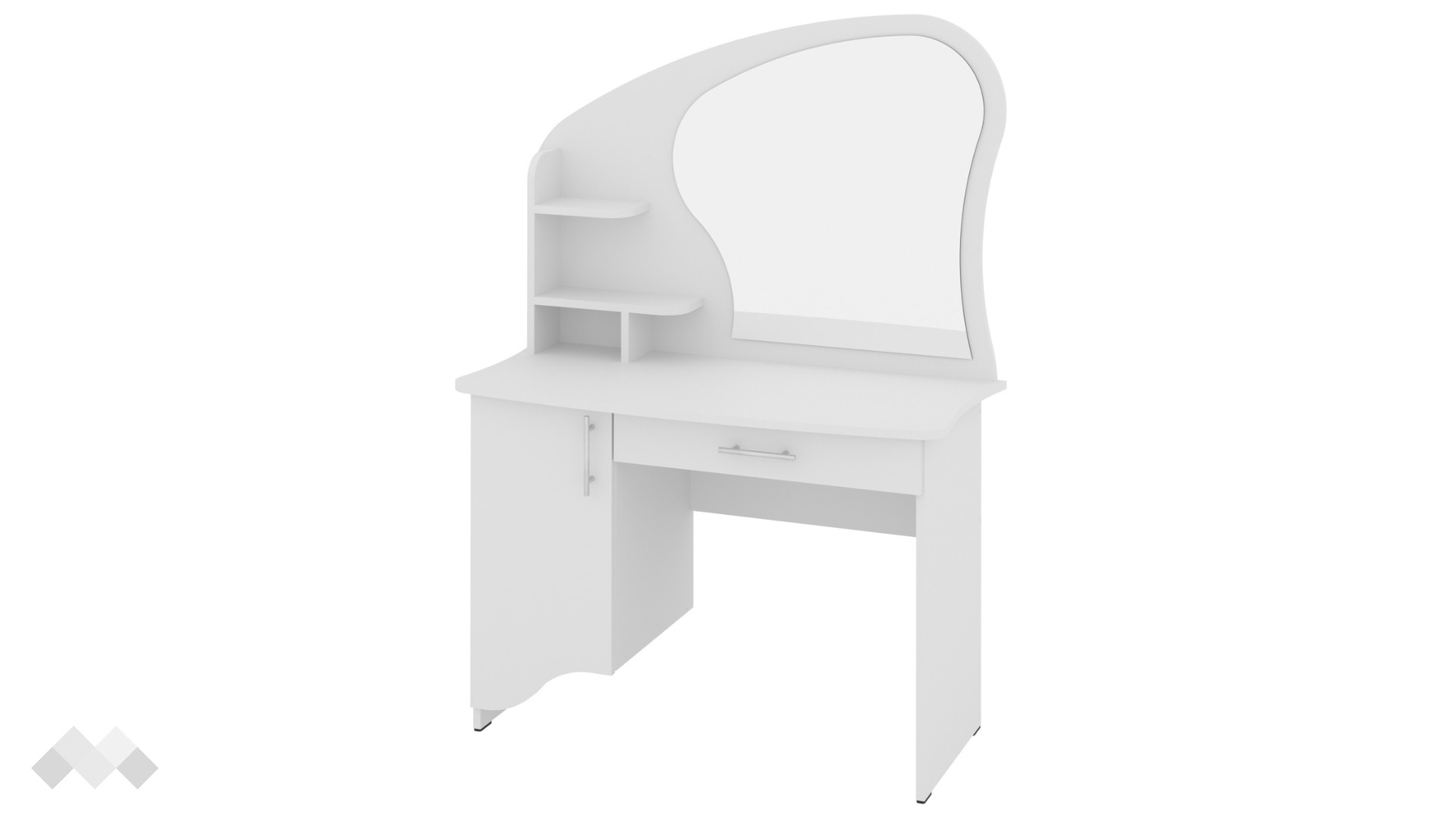 Огледалото е с интересен вълнообразен дизайн, който придава изискан и модерен вид на тоалетката. Неговата форма добавя артистичен акцент и прави тоалетката истински център на внимание.