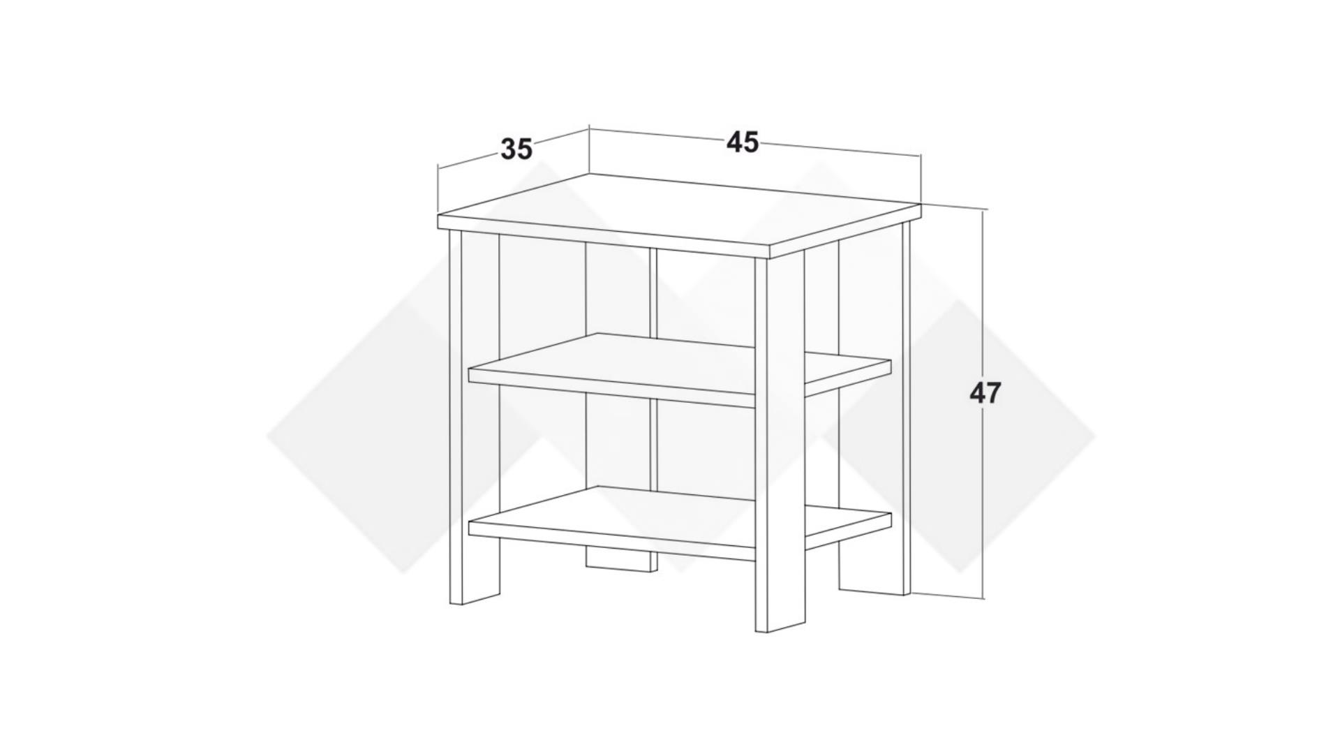 Нощен шкаф Борей е идеален за поставяне до леглото, осигурявайки лесен достъп до всичко необходимо през нощта или рано сутрин. Шкафът разполага с два отворени рафта, които предлагат удобно пространство за съхранение на книги, списания, будилник или други лични вещи, които искаш да бъдат на една ръка разстояние.
