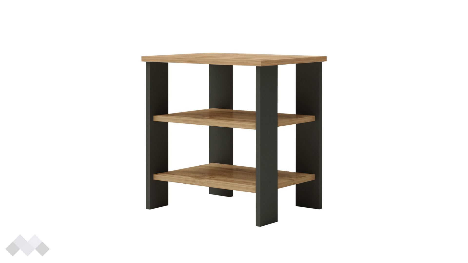 Нощен шкаф Борей е идеален за поставяне до леглото, осигурявайки лесен достъп до всичко необходимо през нощта или рано сутрин. Шкафът разполага с два отворени рафта, които предлагат удобно пространство за съхранение на книги, списания, будилник или други лични вещи, които искаш да бъдат на една ръка разстояние.