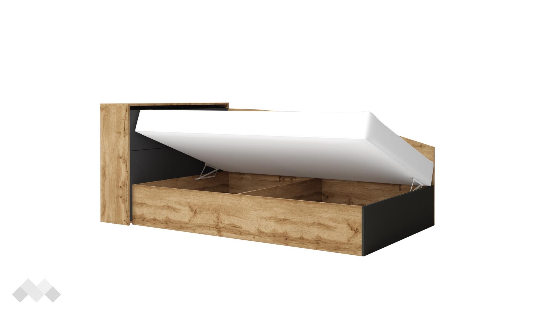 Включеният повдигащ механизъм предоставя лесен достъп до просторна подматрачна зона, перфектна за съхранение на спално бельо, сезонни дрехи и други вещи, които трябва да бъдат лесно достъпни. Леглото е изработено от висококачествено 16 мм ПДЧ, което гарантира дълготрайност и стабилност.