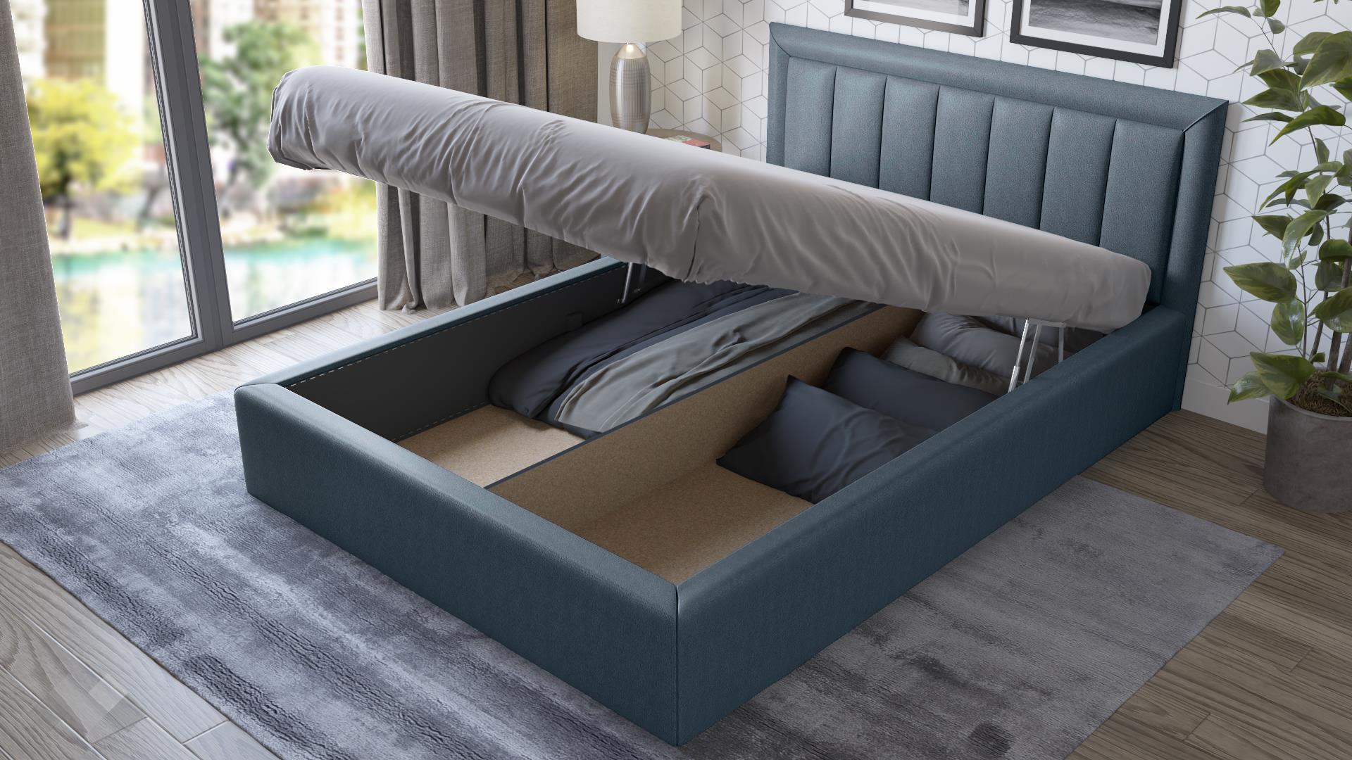 Спалнята е с включен механизъм за повдигане на матрака, за да използваш пространството под матрака като допълнително място за съхранение.