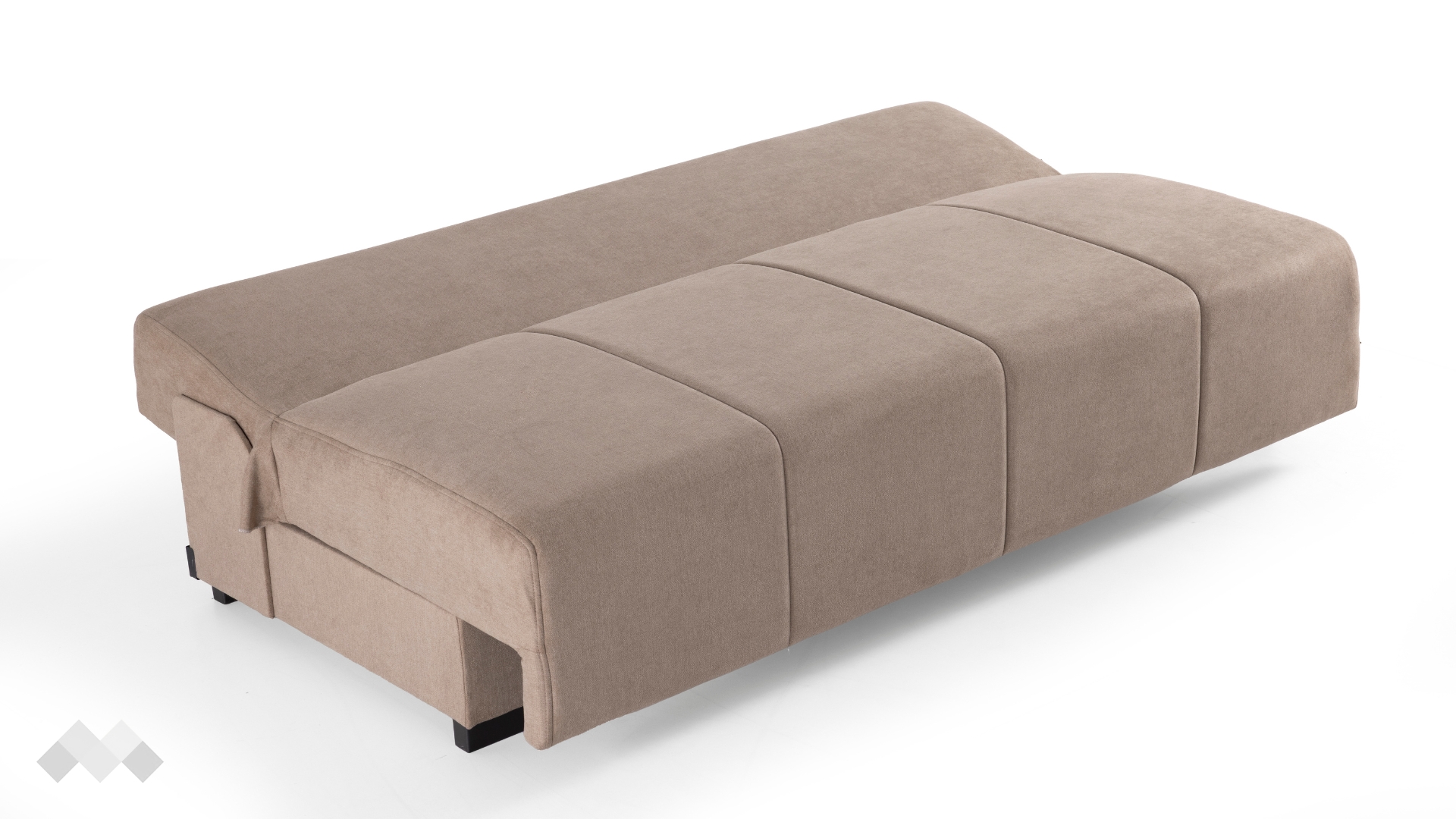 Канапето разполага с удобни възглавници за подлакътници, които осигуряват допълнителна опора при седене и могат лесно да се премахнат, за да се освободи повече пространство за отдих. Под меката седалка ще откриеш практична ракла – идеална за съхранение на одеяла, възглавници или други домашни принадлежности. А когато имаш нужда от легло, само с едно движение трансформираш канапето в удобна площ за сън, благодарение на лесния за използване клик-клак механизъм.