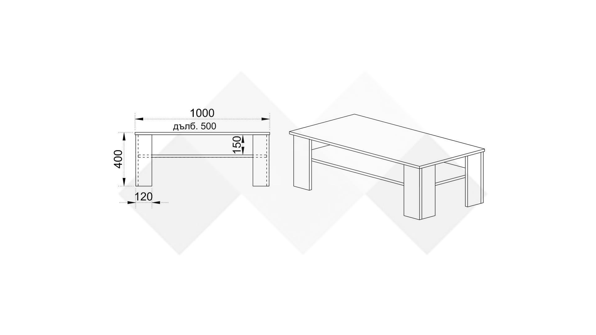 Масичката е изработена от висококачествено 16 мм ПДЧ, гаранция за здравина и стабилност. Цветовата комбинация е черно шагре с бяло гладко – класическа, но никога не излизаща от мода.