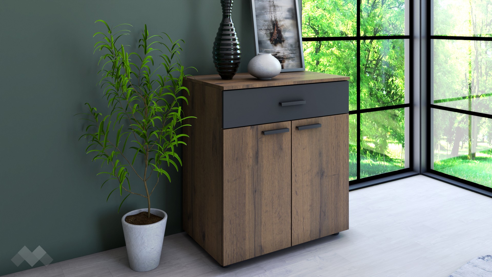 Скринът ти предлага 2 обемни шкафа с вратички и чекмедже. В него ще можеш да организираш цялата си козметика, малки ел. уреди или други вещи, от които се нуждаеш.