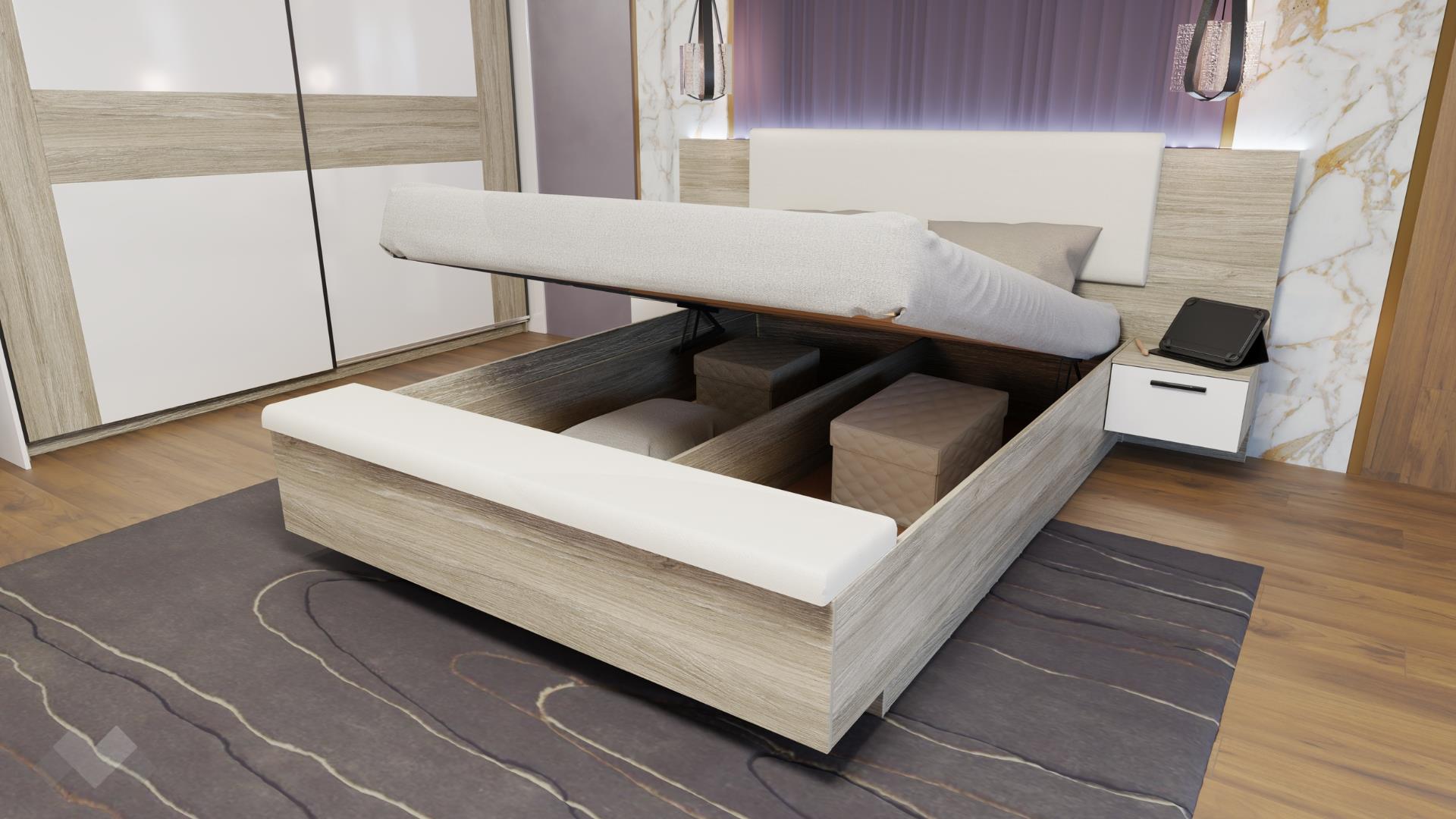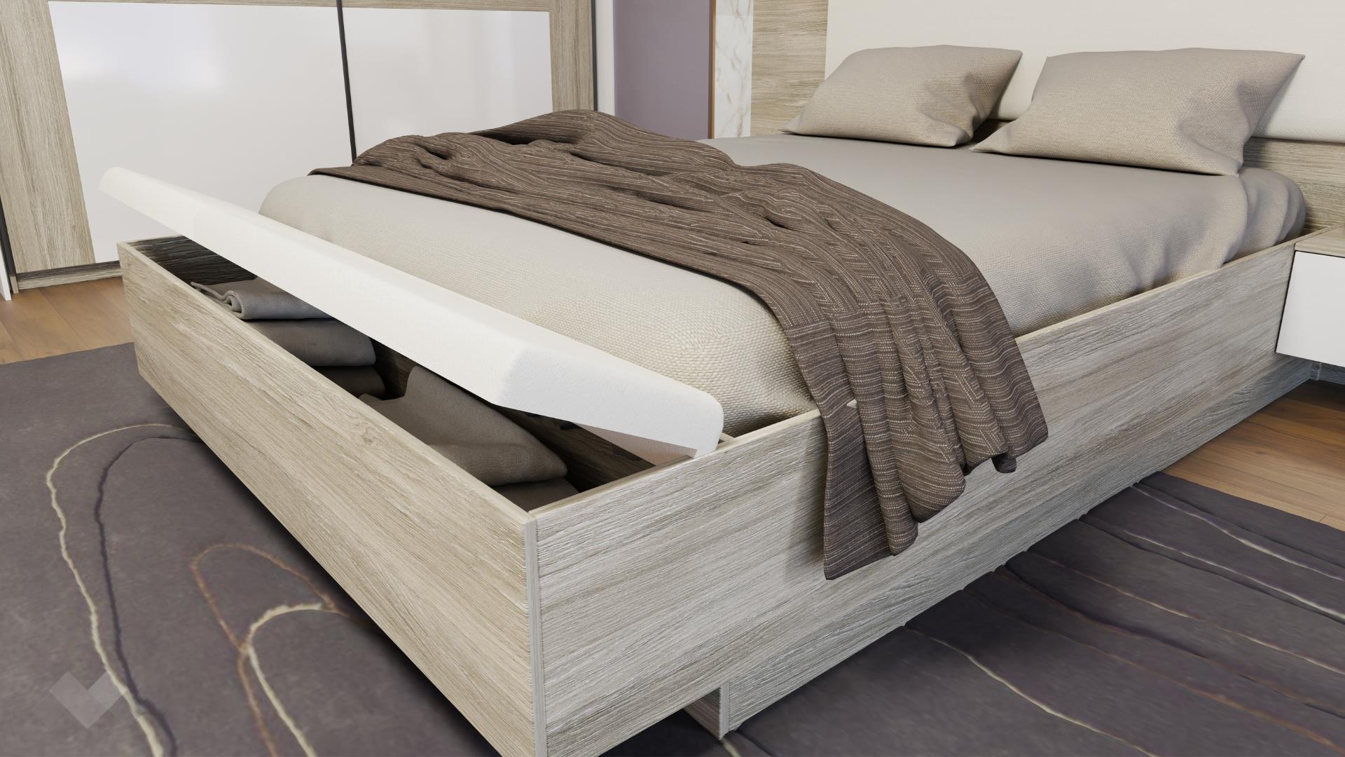 Към спалния комплект е включен механизъм за повдигане на матрака, за да можеш да използваш пространството под него за оптимално съхранение.