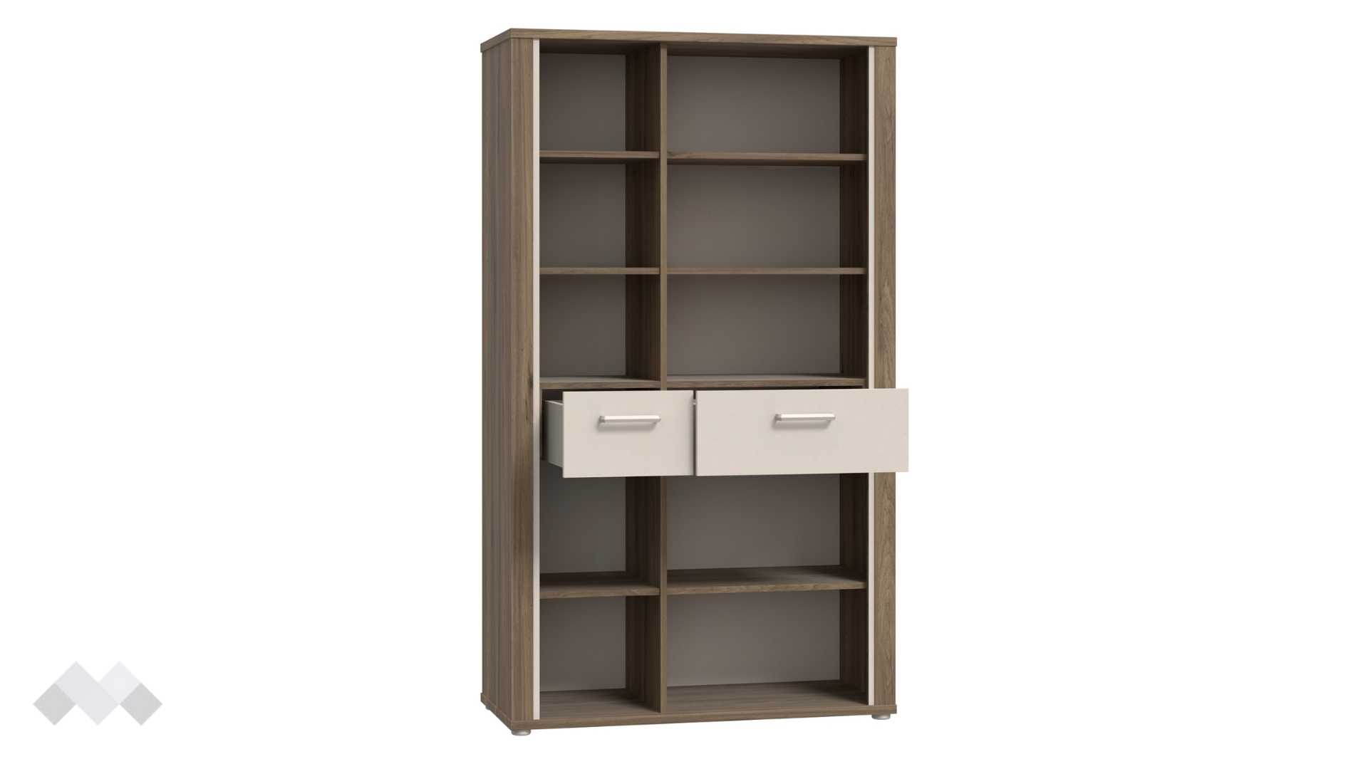 Висок шкаф с две чекмеджетаДейлосдъб валенсия с крем с открити рафтове