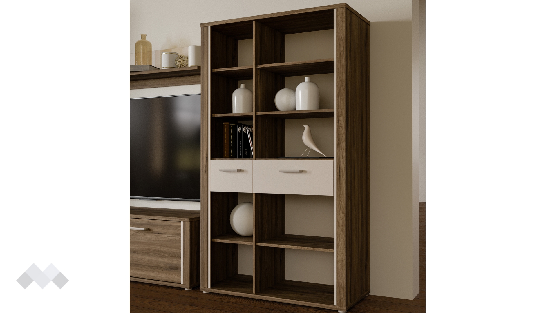 ⭐ Предимства: ✓ 2 чекмеджета ✓ 10 отворени рафта ✓ компактен и функционален ✓ модерен дизайн ✓ здрава изработка ✓ комбинация от 22 мм ПДЧ и 15 мм ПДЧ
