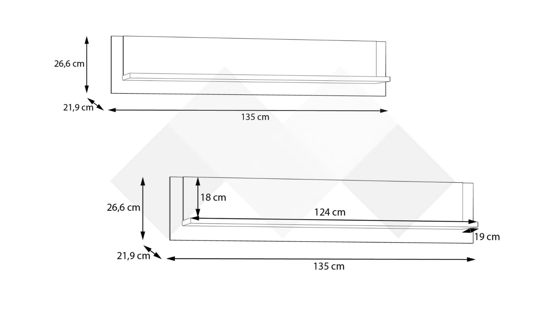 Д: 135 см Ш: 21,9 см В: 26,6 см