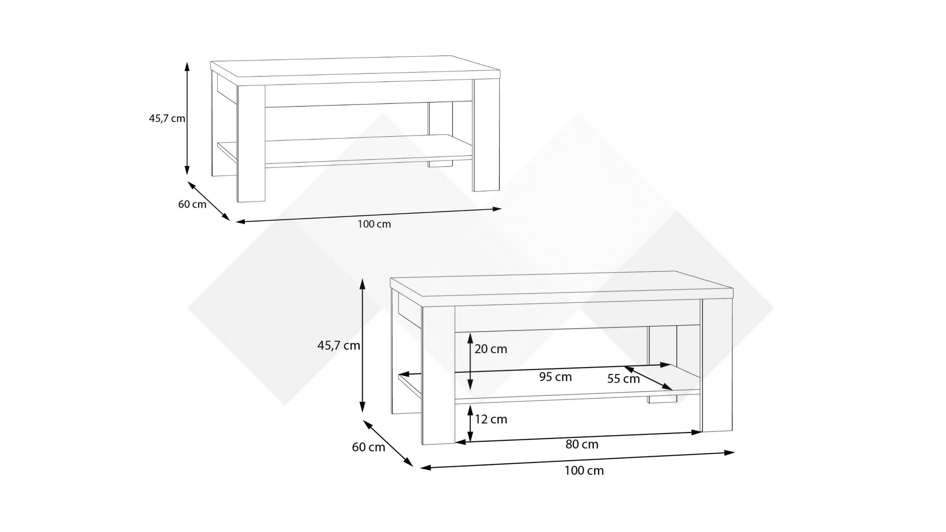 Холна маса Дейлос е елегантно и удобно допълнение за твоя хол, съчетавайки стилен дизайн с практичност. Тя предлага удобство чрез два плота – здрав горен плот, идеален за напитки, лаптоп, декорации и други необходими вещи, и долен плот, подходящ за съхранение на книги, списания или дистанционни. Съвременният дизайн на масата позволява лесна комбинация с различни интериорни стилове.