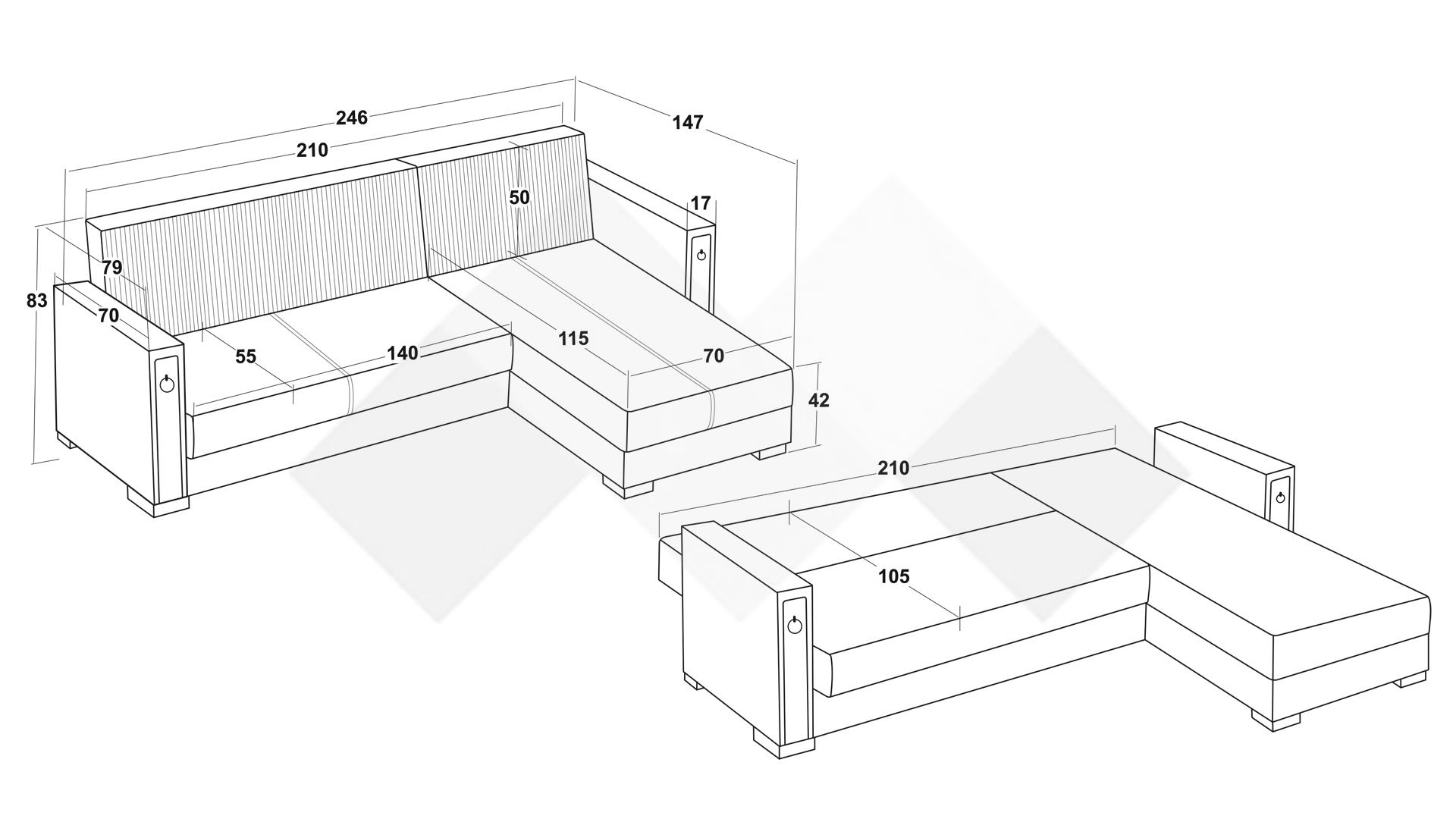 Д: 246 см Ш: 147 см В: 83 см