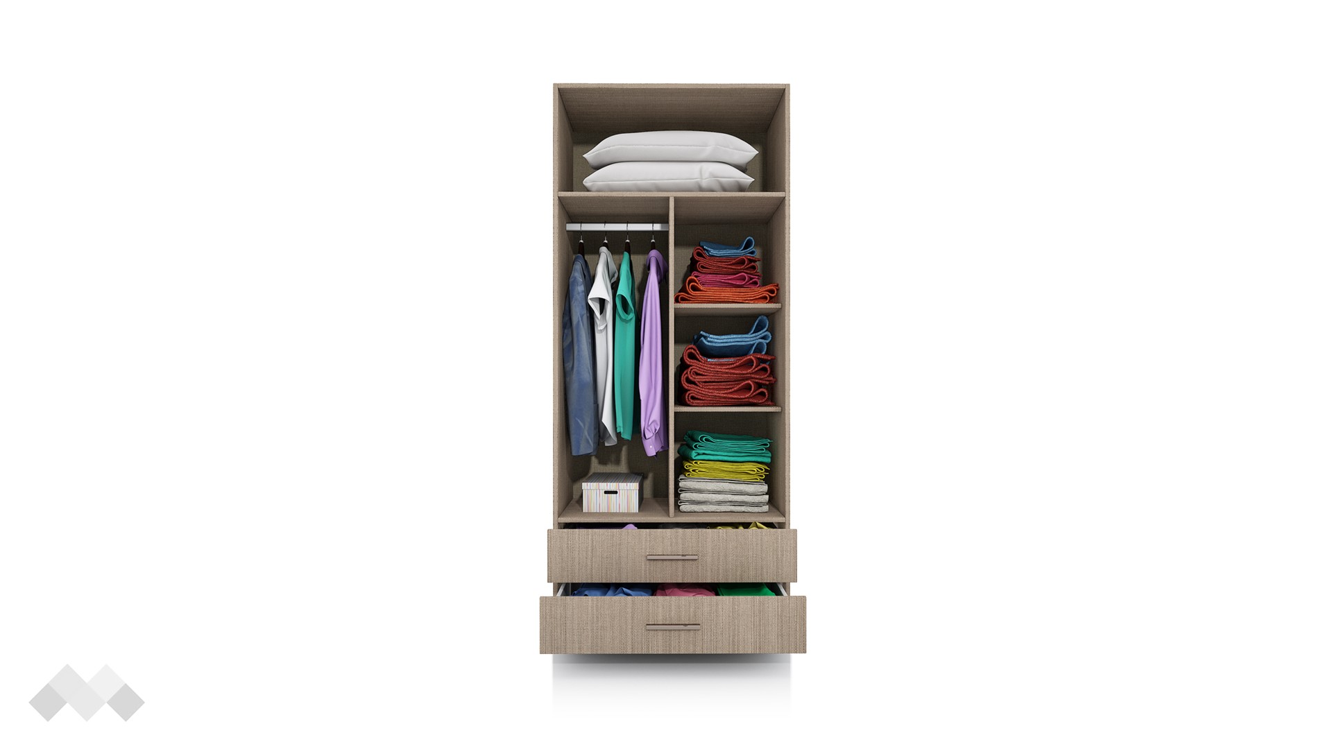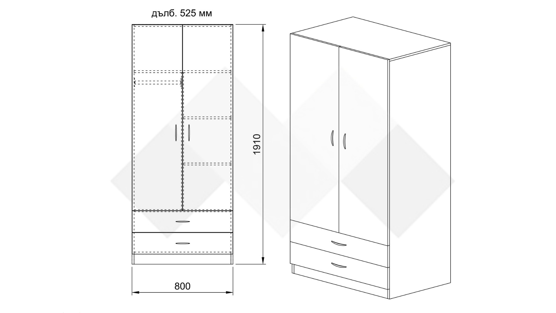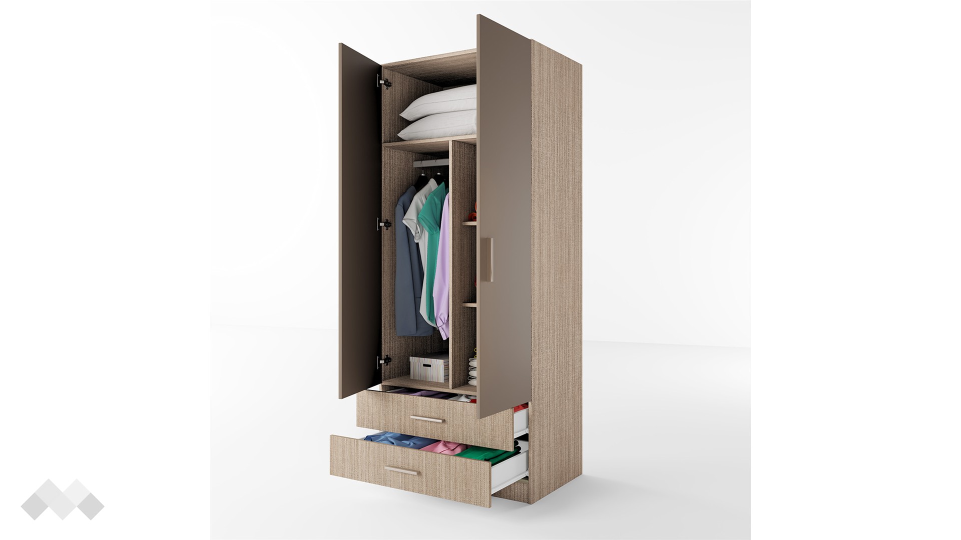 Благодарение на практичното разпределение на вътрешното пространство, с лекота ще можеш да организираш и съхраняваш дрехите си, като същевременно ще имаш бърз достъп до всеки тоалет. В широките две чекмеджета е удобно да съхраняваш бельо, чорапи или други аксесоари. Комбинацията от рафтове и лост за закачалки ти дава възможност да организираш дрехите си по най-удобния за теб начин.