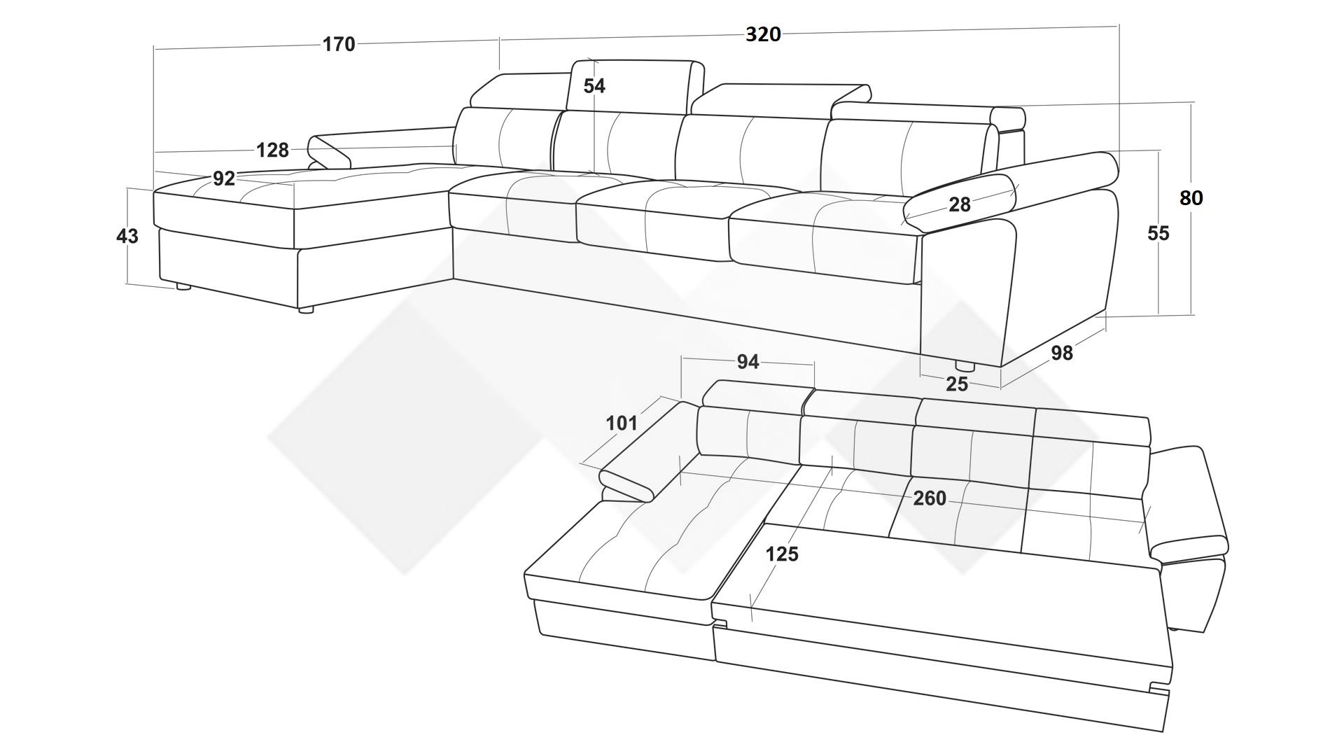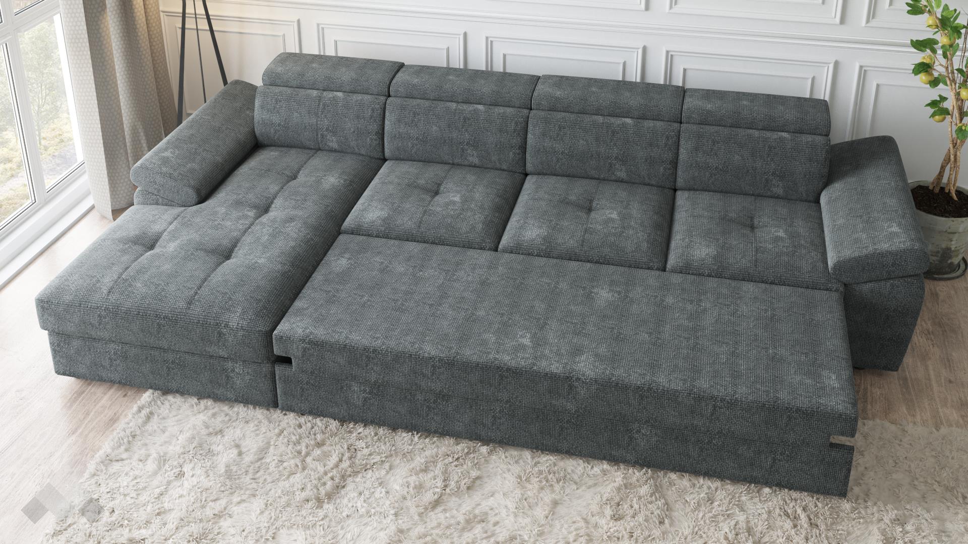 Моделът разполага с функция сън с площ 260 см дължина и 125 см ширина, която се активира чрез издърпващ механизъм – практично и лесно решение за настаняване на гости или ежедневна употреба. Под лежанката е разположена ракла за съхранение, осигуряваща допълнително пространство за завивки, възглавници или други вещи.
