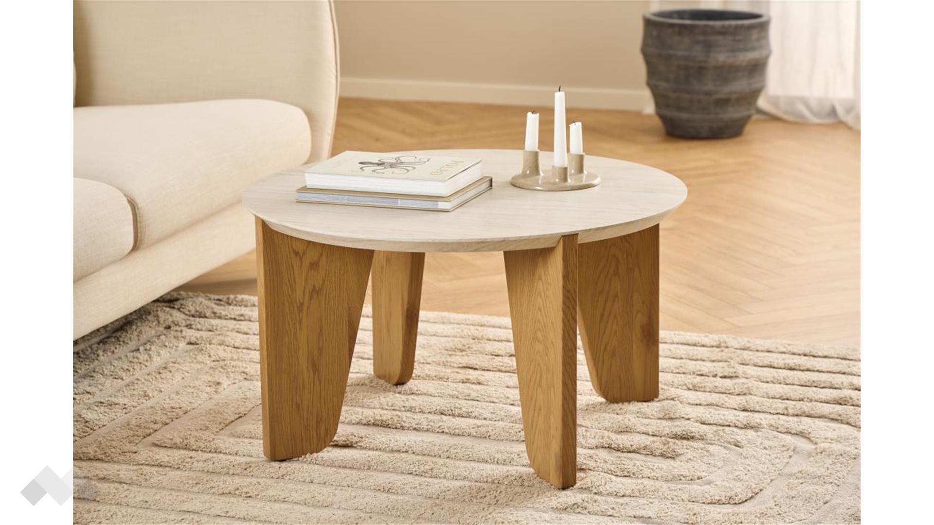 Холна маса Докланд е съвършено съчетание на минимализъм и съвременен дизайн. Със своята кръгла форма и гладките ръбове, тя придава усещане за мекота и елегантност в интериора. Плотът от МДФ осигурява здравина и издръжливост, като същевременно запазва модерния си и изчистен вид.