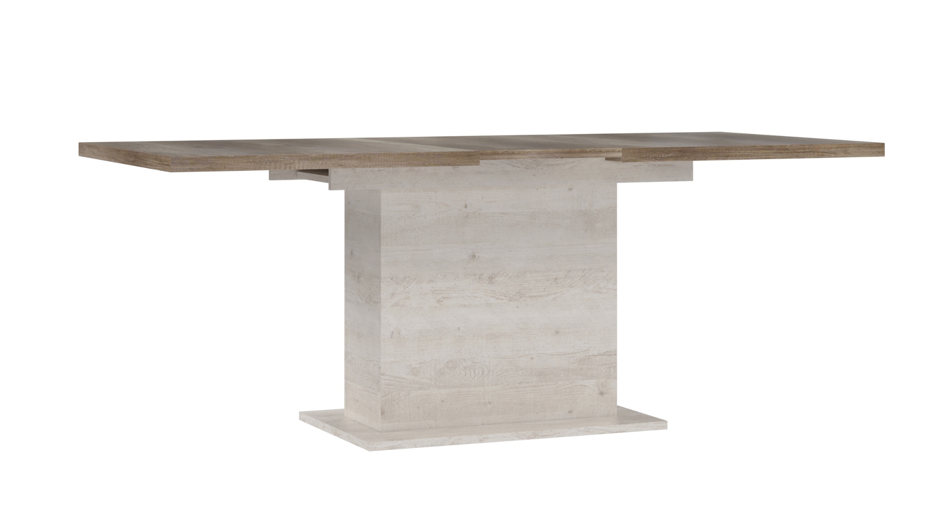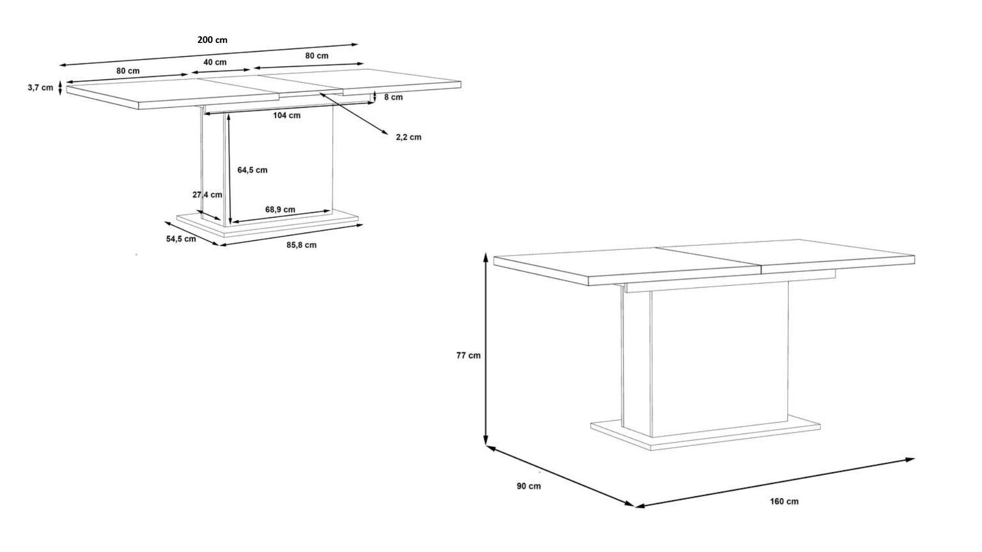 Моделът разполага с разтегателен механизъм, който увеличава дължината на плота от 160 до 200 см, позволявайки удобно настаняване на повече хора. Правоъгълната форма и стабилната основа осигуряват надеждност и достатъчно място за подреждане на ястия и сервиз.