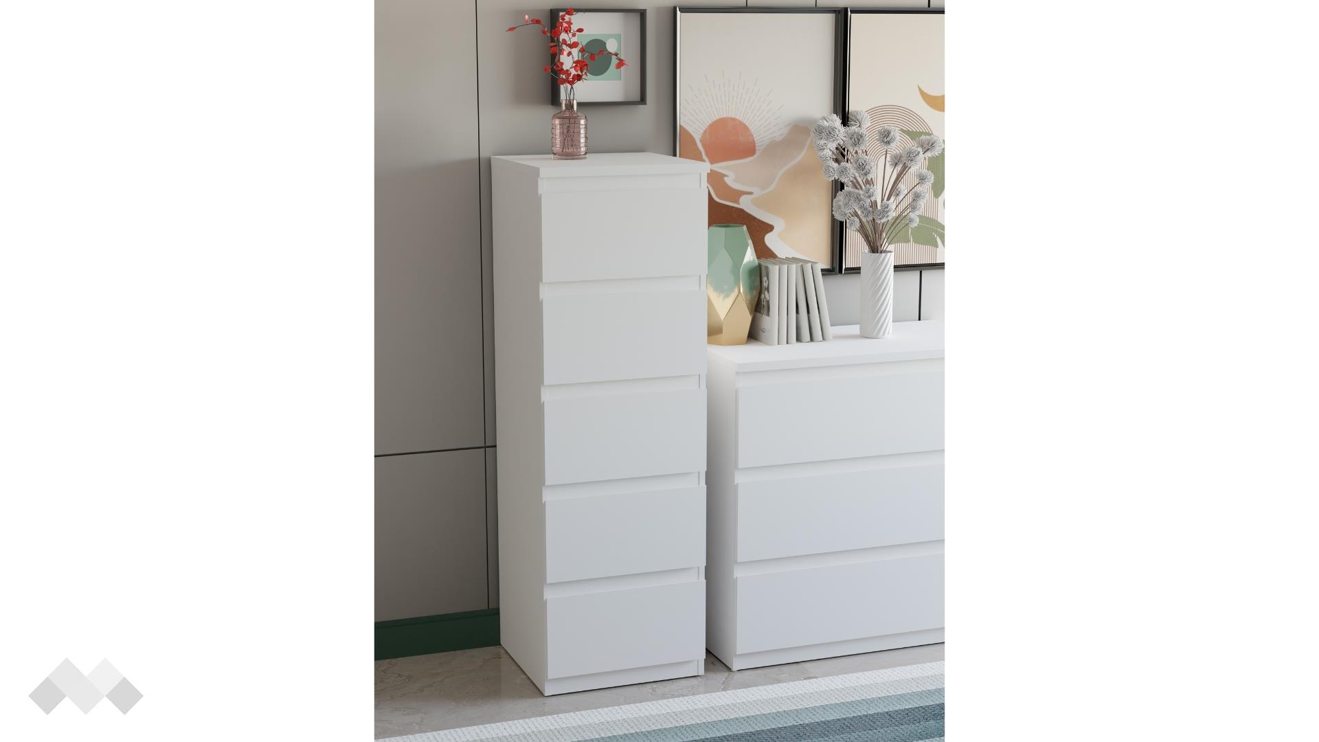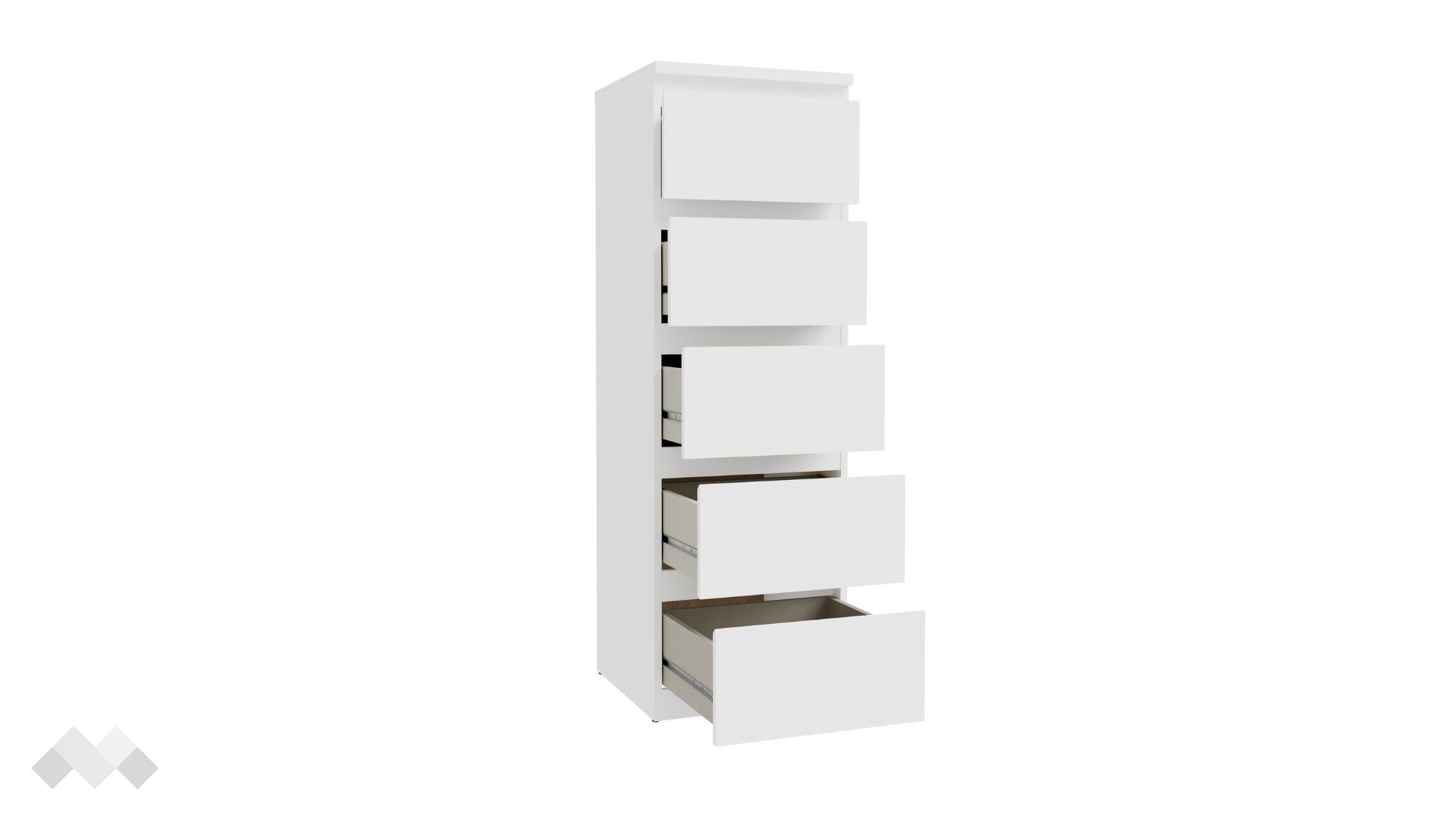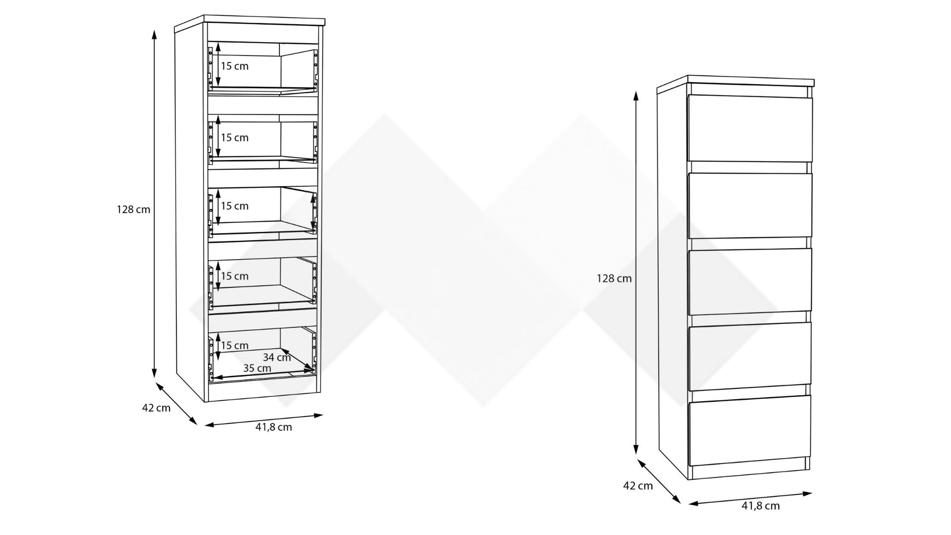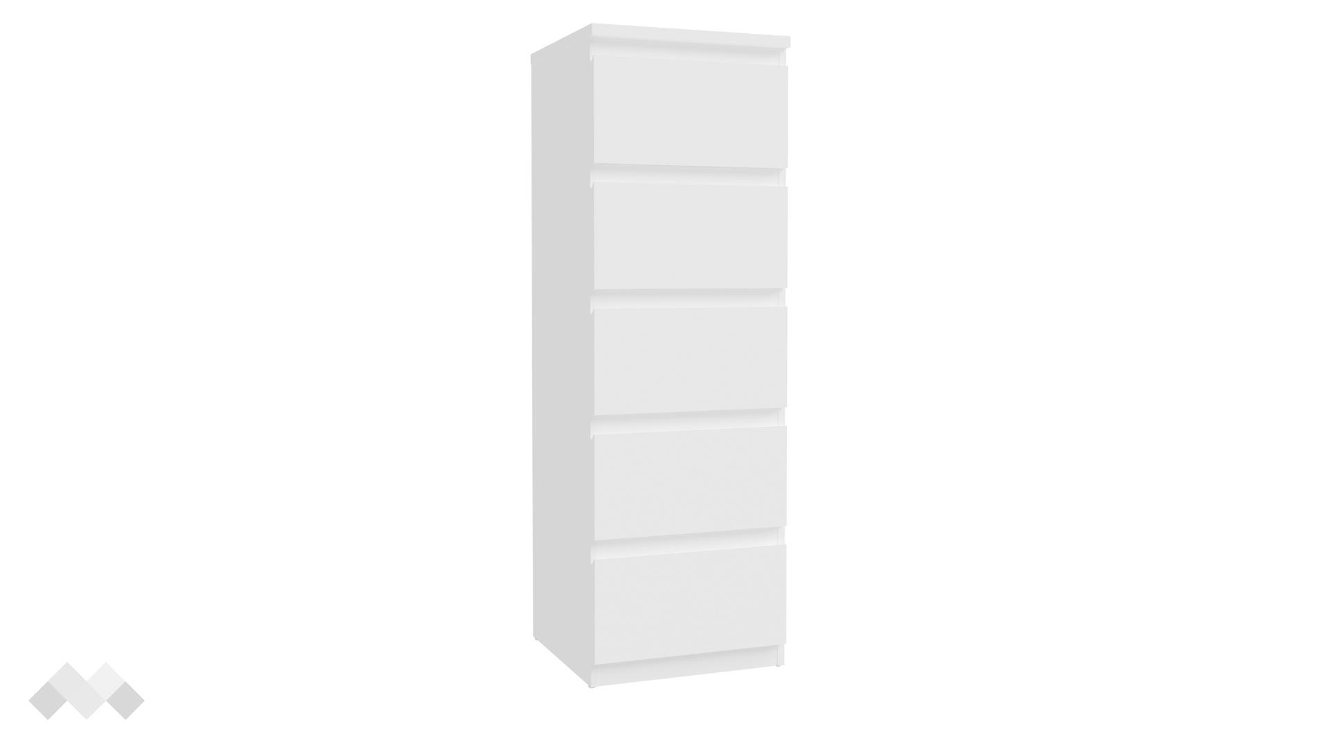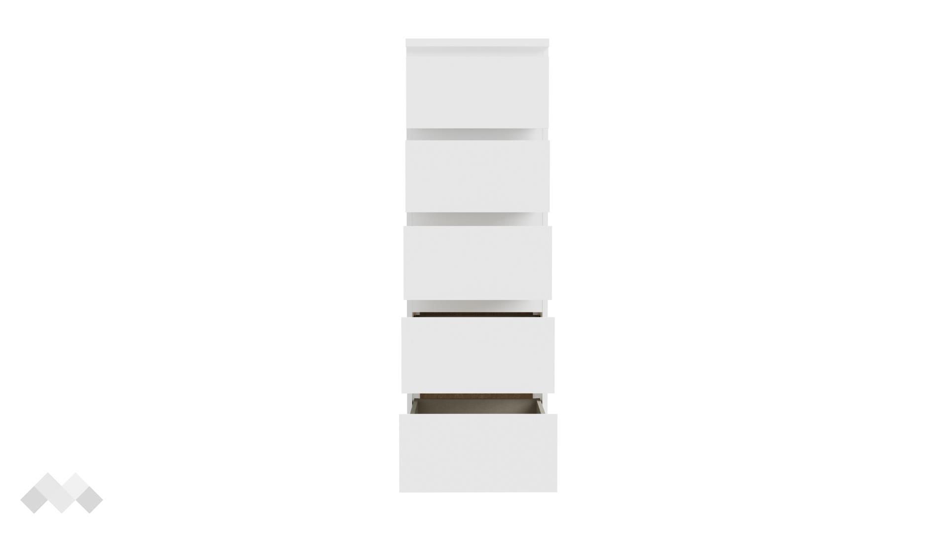 Петте чекмеджета осигуряват достатъчно място за съхранение на дрехи, аксесоари, документи или други вещи, които трябва да бъдат подредени и лесно достъпни. Моделът съчетава функционалност и елегантен външен вид, вписвайки се хармонично в разнообразни интериорни стилове.