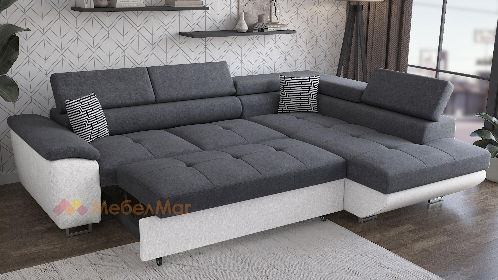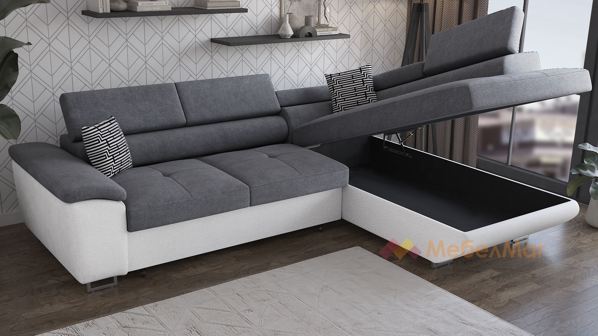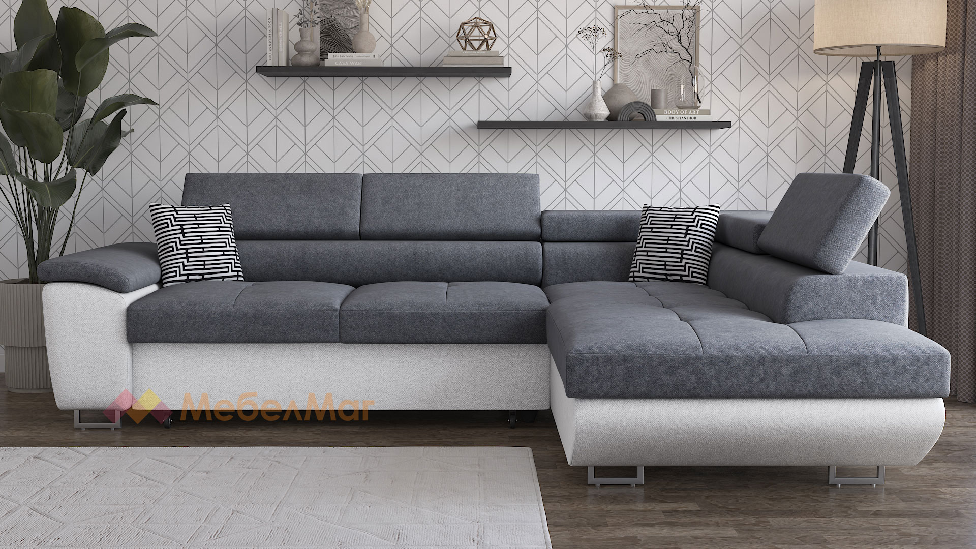Ъглов диванЕдуардсив с бяло с посока: десен ъгъл