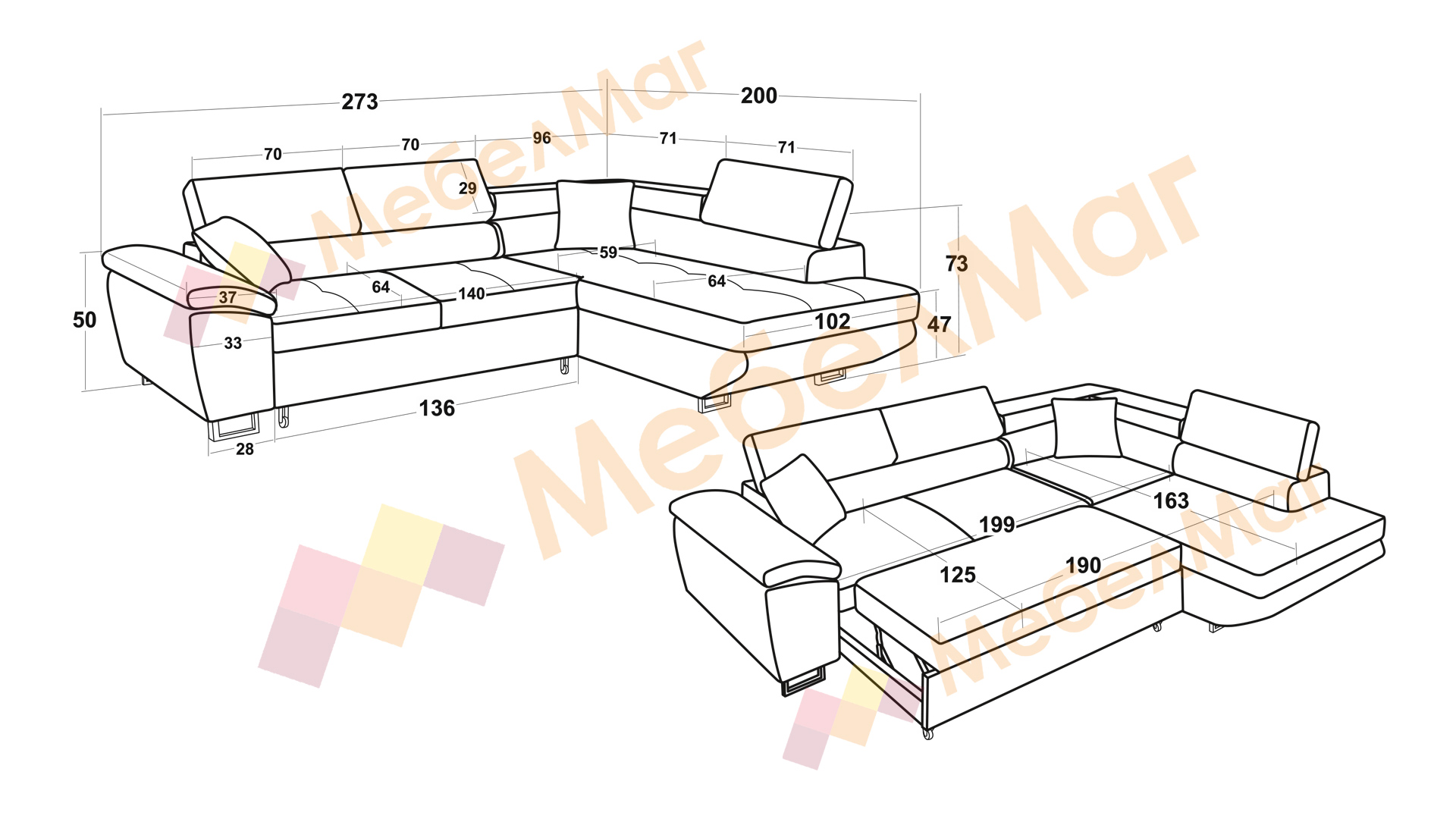 ⭐ Предимства: ✓ модерен дизайн ✓ 3 подглавника ✓ твърда основа ✓ 7 см пенополиуретан ✓ висококачествена изработка ✓ функция сън