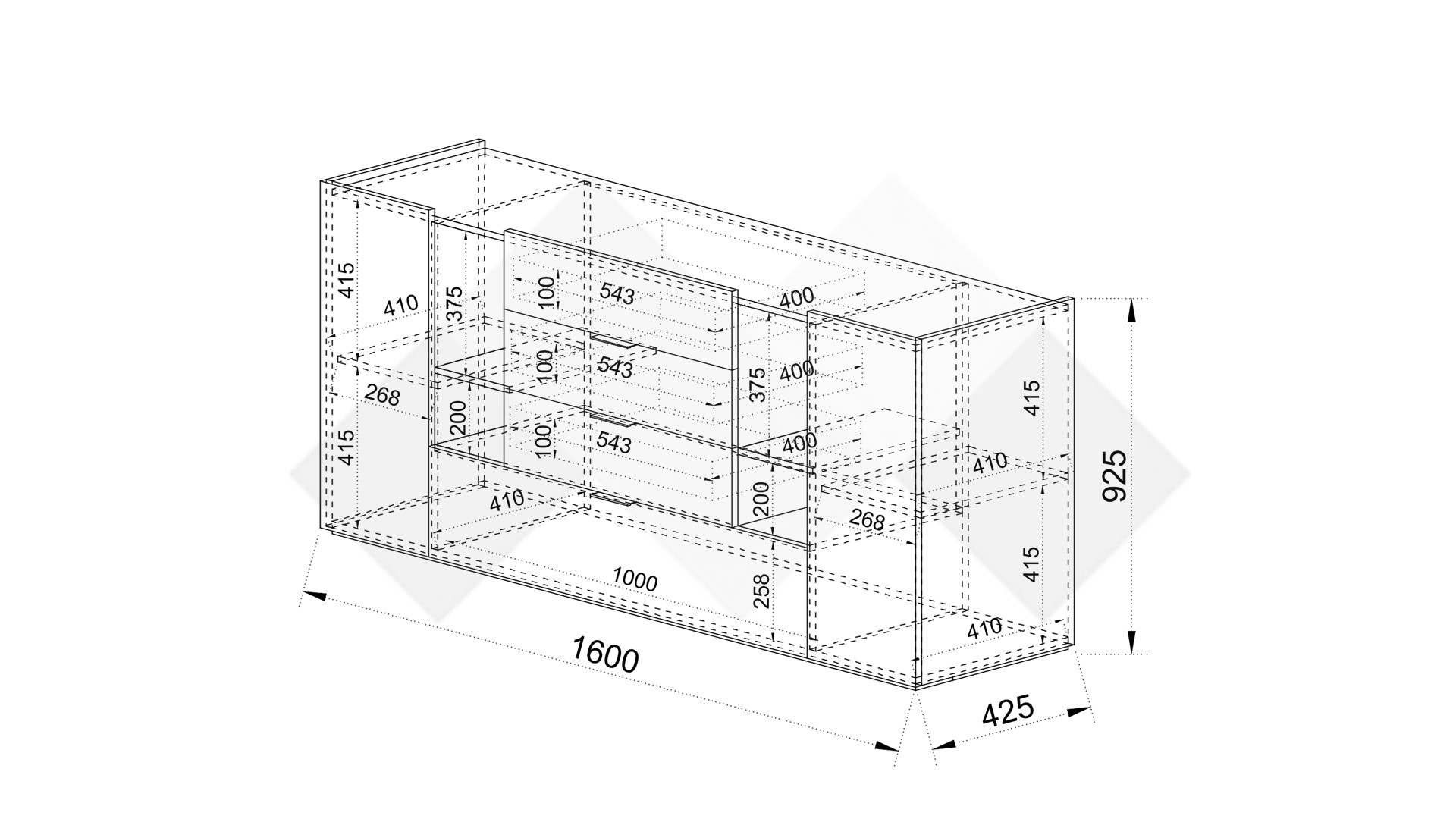 Д: 160 см Ш: 42,5 см В: 92,5 см