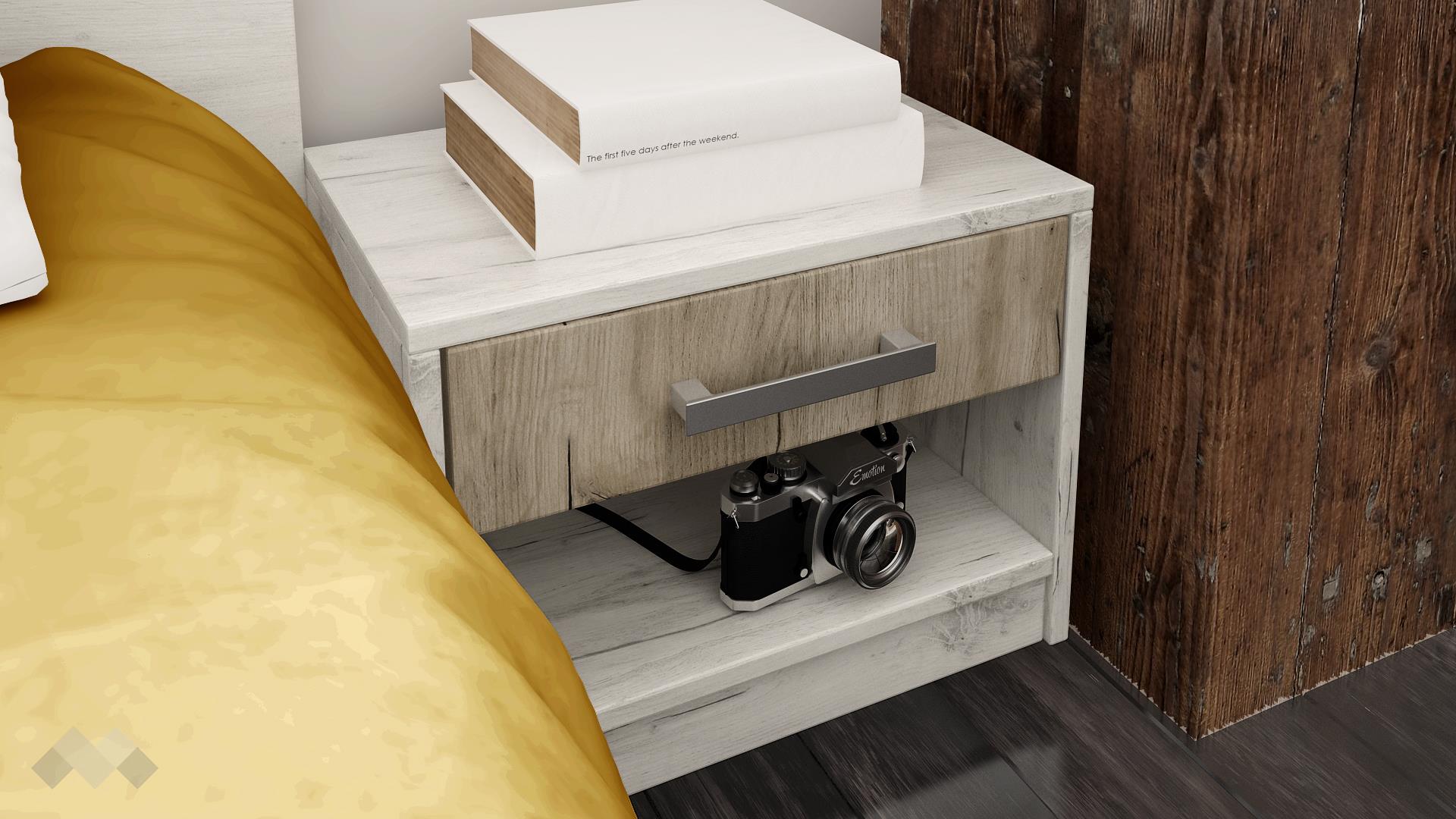 Спалнята е с достатъчно голям размер, за да се чувстваш комфортно, а нощните шкафчета ти предлагат чекмедже и рафт, където да разположиш най-необходимите ти вещи.