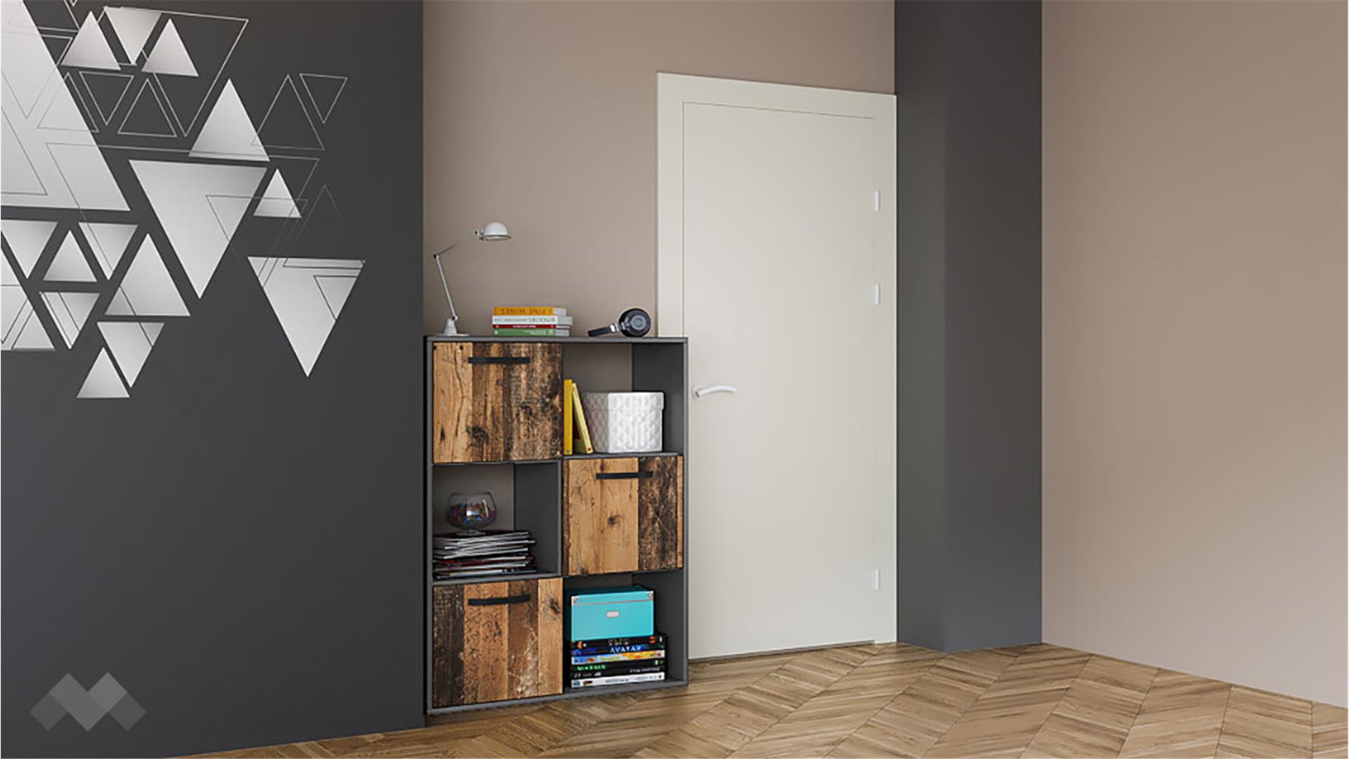 Благодарение на модерния дизайн, етажерка Ерик ще заблести в твоя дом. Това ти позволява да създадеш свой собствен стил, когато подреждаш вещи и украси върху нея. Тя разполага с 3 открити рафта и 3 допълнителни, които се крият зад нейните вратички.