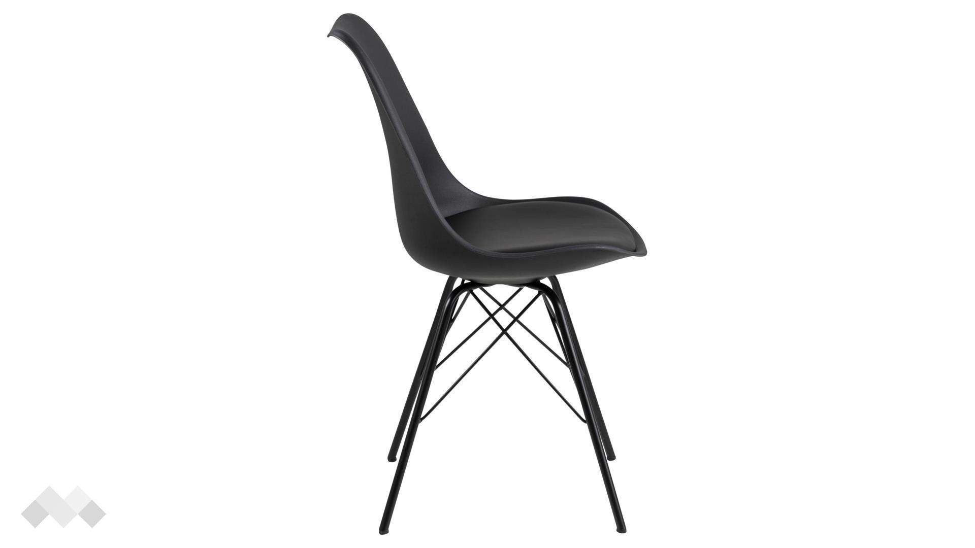 Седалката на стола е с ергономична форма, която перфектно следва извивките на тялото, предоставяйки комфорт при дълги хранения. Възглавничката от изкуствена кожа добавя мекота и улеснява почистването, а металните крака осигуряват стабилност и допълват елегантния вид.