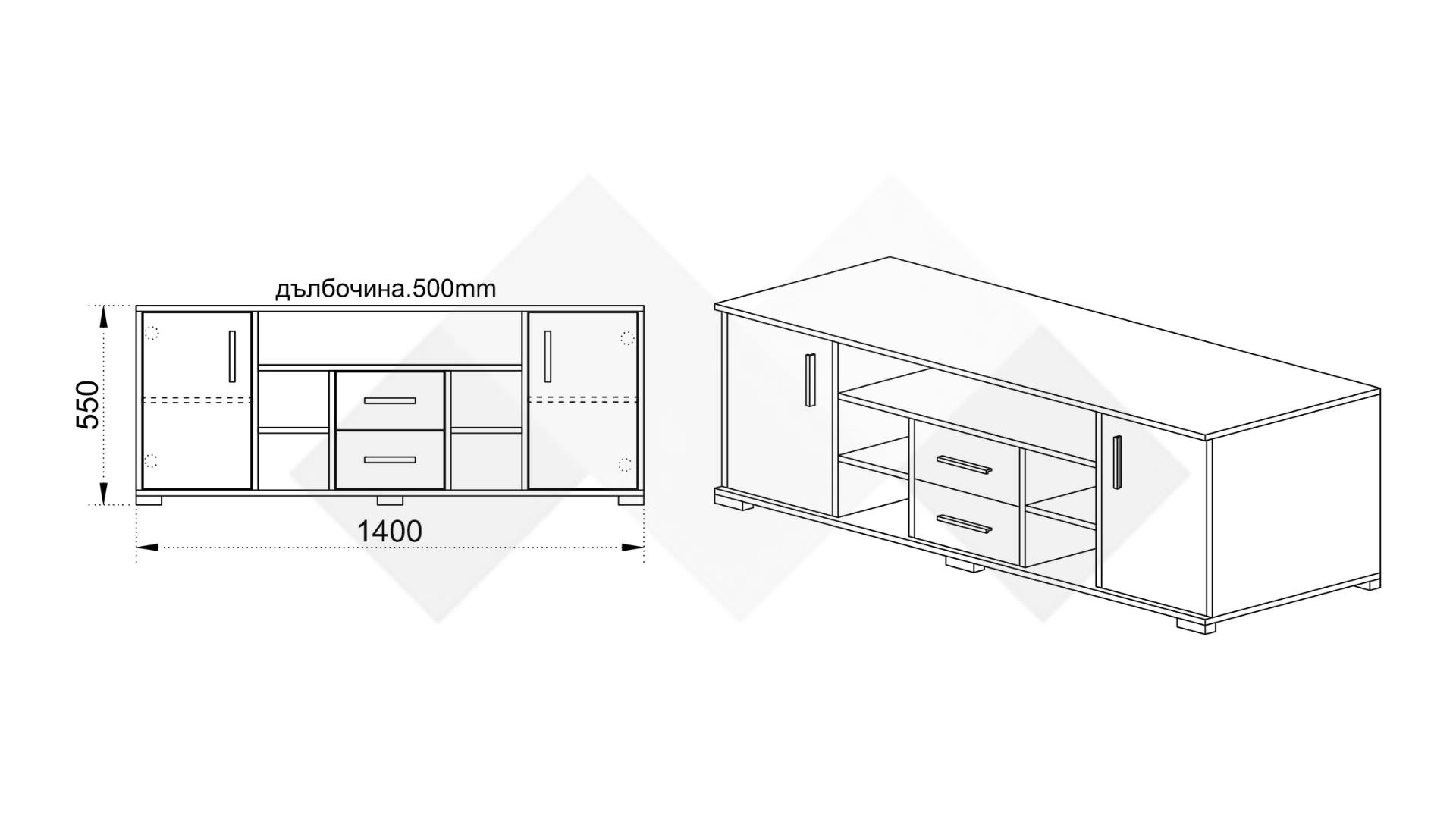 ТВ шкаф Евиана е изработен от висококачествено 16 мм ПДЧ, гаранция за здравина, стабилност и дълъг период на експлоатация.