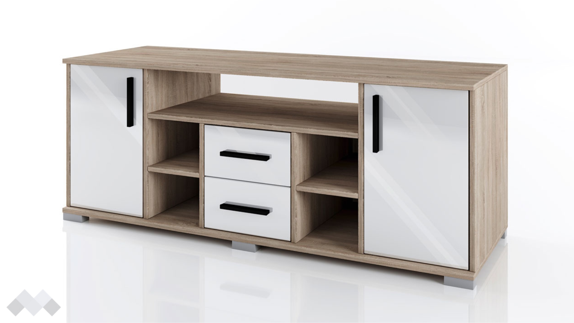 ⭐Предимства: ✓ 2 чекмеджета ✓ 5 отворени рафта ✓ 2 затворени шкафа ✓ модерен дизайн ✓ компактен и практичен ✓ качествена изработка ✓ 16 мм ПДЧ
