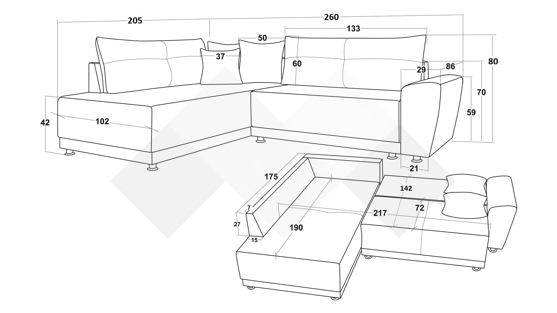 Ъглов диван Фабио е стилно и практично допълнение към съвременния дом. Със своя модерен дизайн и функционалност, той осигурява удобство както за ежедневно ползване, така и при необходимост от допълнително място за сън.